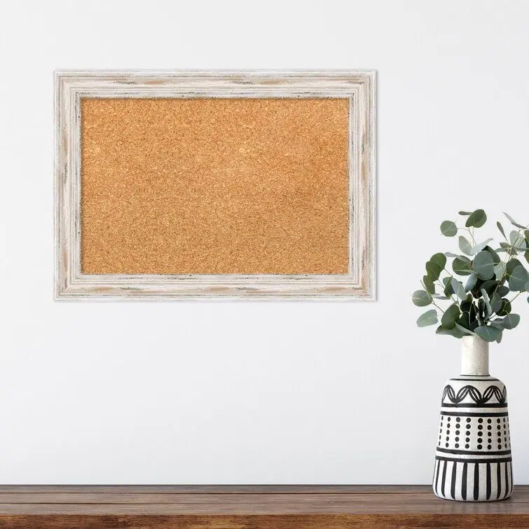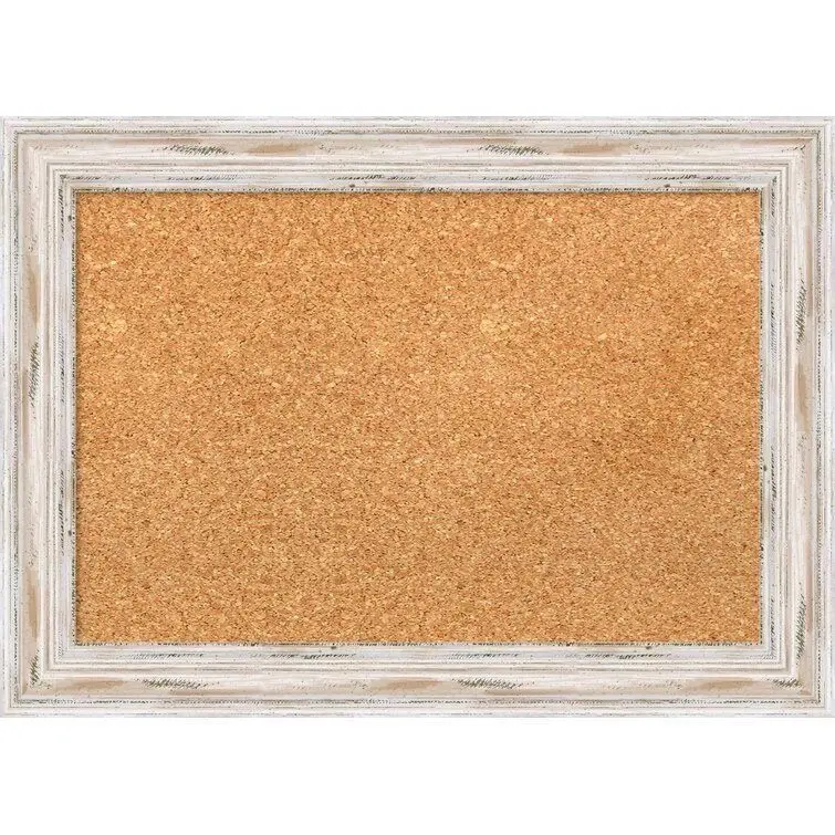 - Reminders? Memories? Mail? You can keep it all right up on the wall with this beautiful bulletin board. Brimming with beachy beauty, its cork center is effortlessly highlighted by a wood frame finished in distressed hues of white and tan