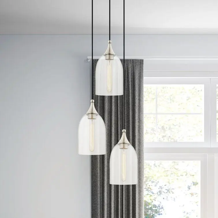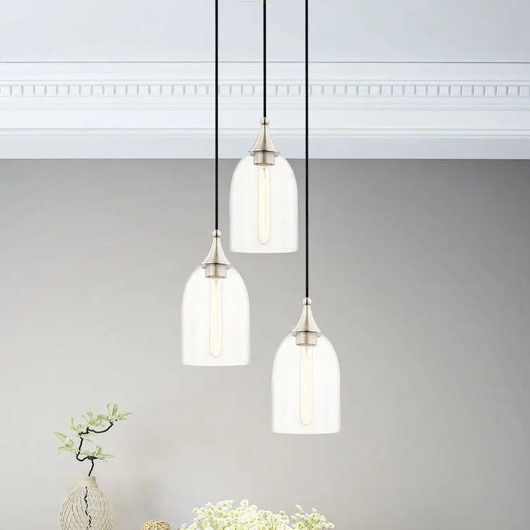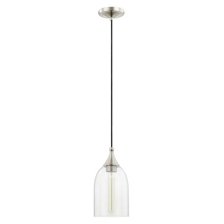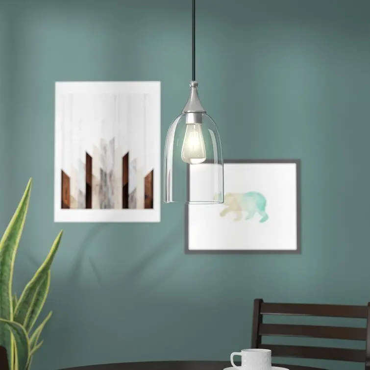- Cast a stylish glow over any seating group or entertainment ensemble with this understated mini pendant, the perfect piece for your updated and contemporary aesthetic. Hang a row of four over your kitchen island or peninsula to light up enviable hors d'oeuvre spreads and apres-dinner sundae stations, or station one above the sink to light up your utilitarian space. Featuring a simple brushed nickel finish and hand-blown glass shade, this design effortlessly blends into any aesthetic. Watch as it mixes into your transitional living room look, or outfit it with a glowing Edison bulb to create a more cosmopolitan, loft-worthy look.