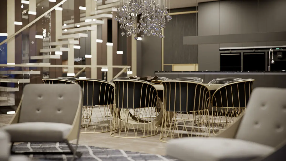 Corona Cinema 4D Scene files - Penthouse Scene 3D model with a Living room, Dining & Kitchen area (Interior CGI)