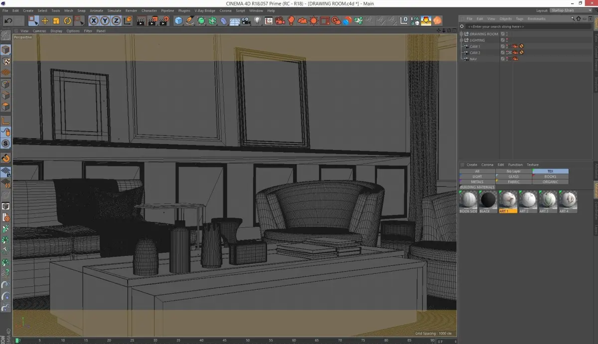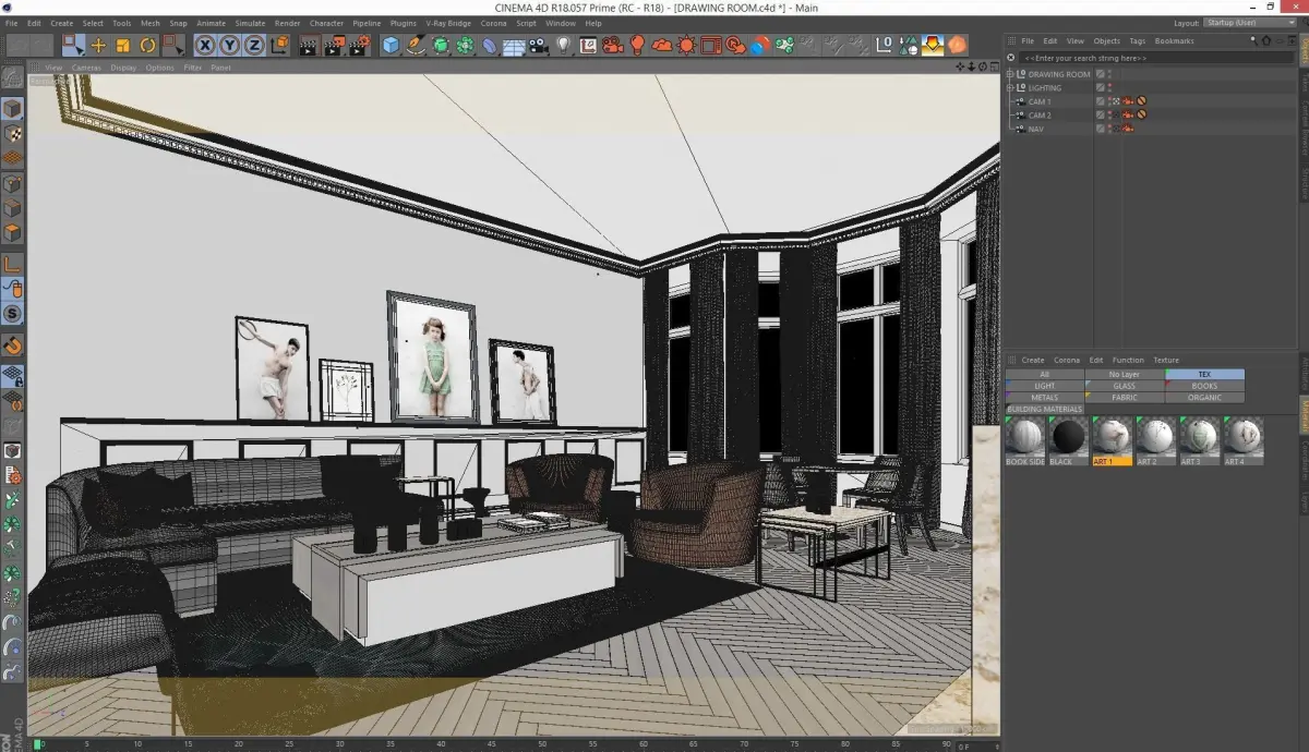 Corona for Cinema4D Scene files - Drawing Room Scene (full Interior CGI)
