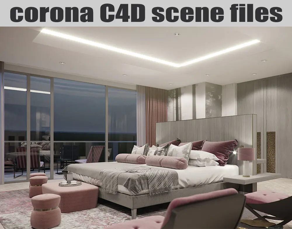 Corona C4D files - Master Bedroom Scene (Interior CGI)