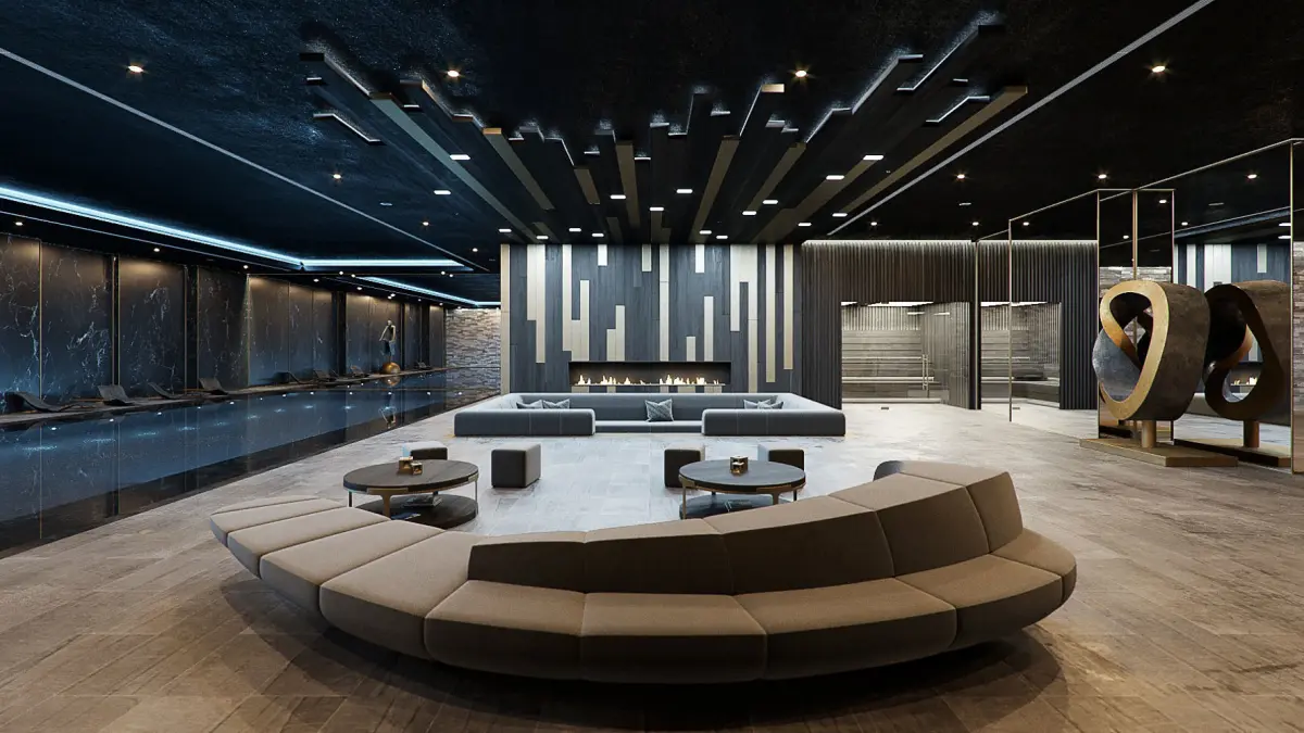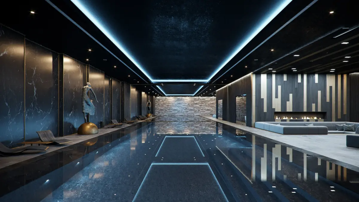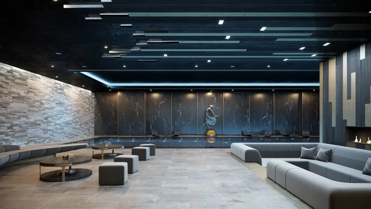 Corona for Cinema4D CGI files for a Residential Pool space with a chill-out-area, sauna, steam room, massage area & fire pit.I can see this in a Luxury Home underground, on basement level where people can chill out next to the pool, or sit at the fire pit enjoying wine, or just enjoying a nice massage in the Spa...