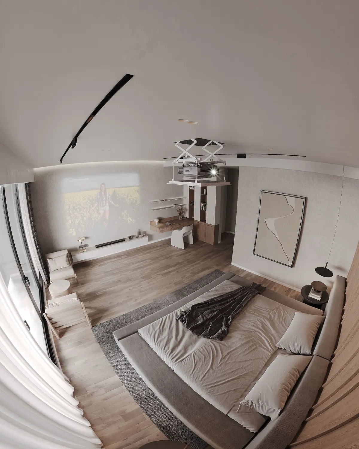 This is a Bedroom Design with visualilsation I have prepared with high quality models and textures. It's part of a full apartment design I did for a client, you can find other parts of the Design like the Open living space, Kitchen, Coffee Corner, Wardrobe, Two Bathrooms in my profile.