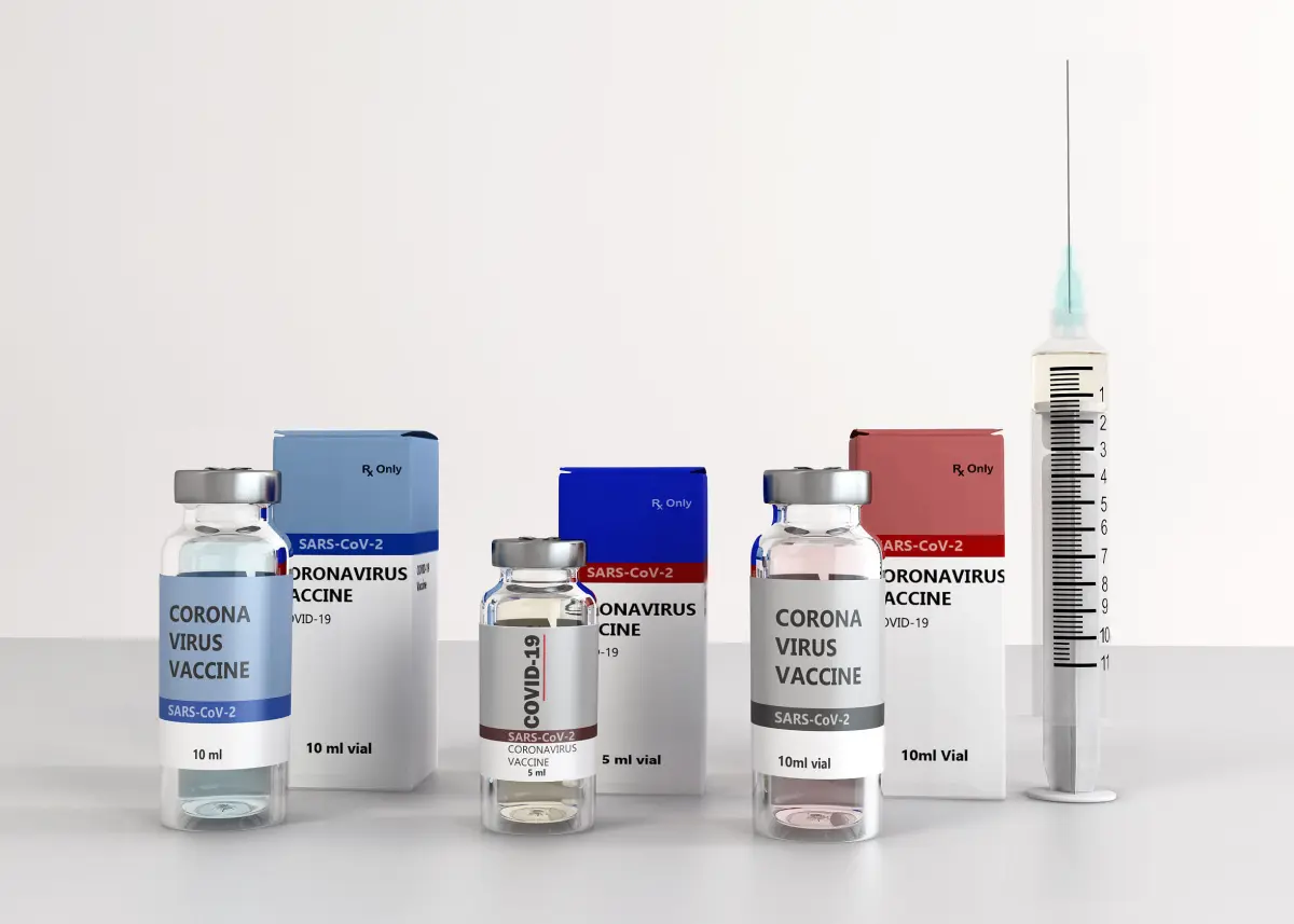 COVID-19 vaccine: 3 different formula and doses in vials with syringe that has medical liquid inside, Models for coronavirus pandemic and medical treatment laboratory.