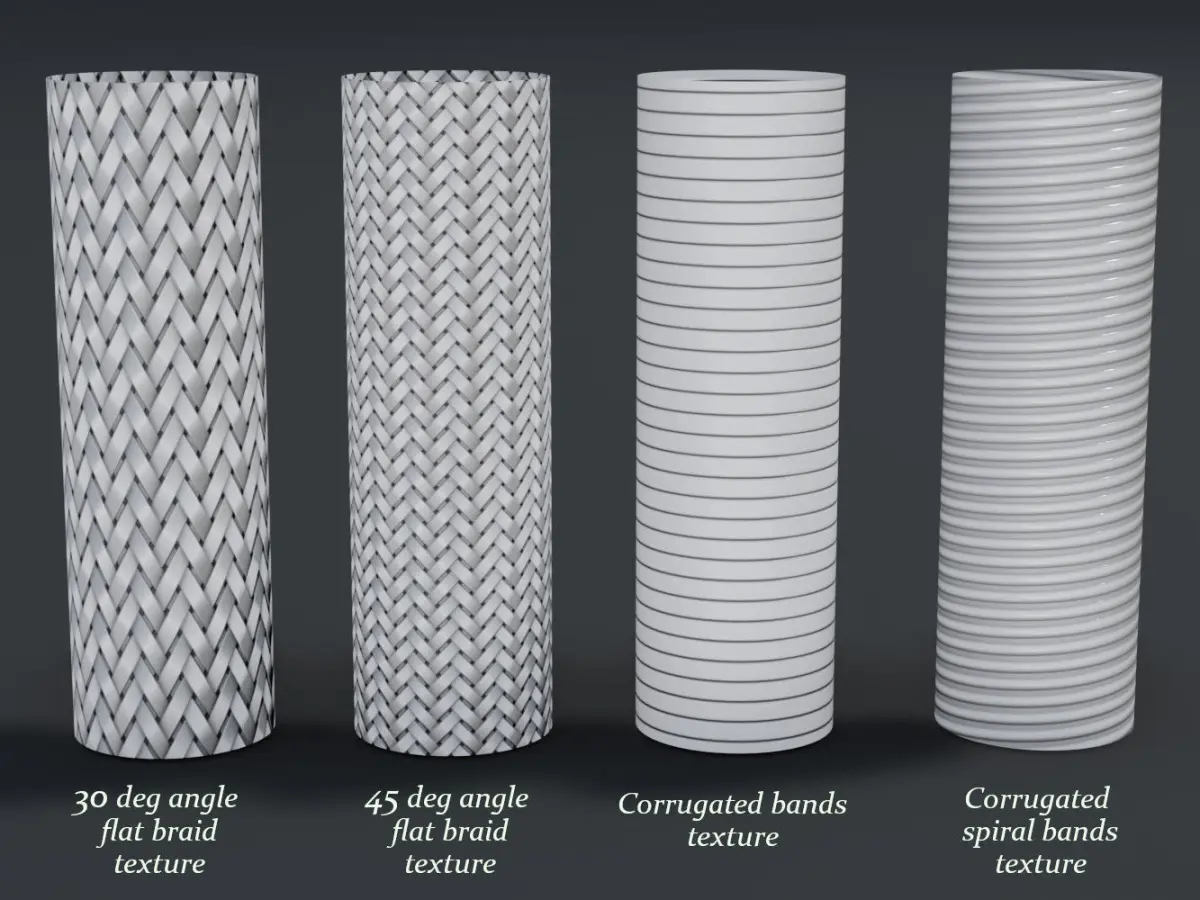 These are six variations of metal hose sleeving texture sets that can be applied to low poly geometry.