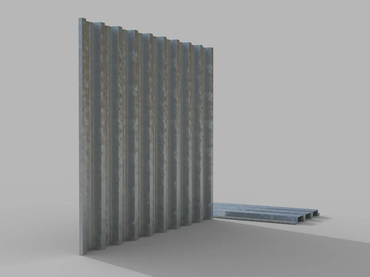 Corrugateed galvanized sheets 3D lowpoly model. Multiple import formats