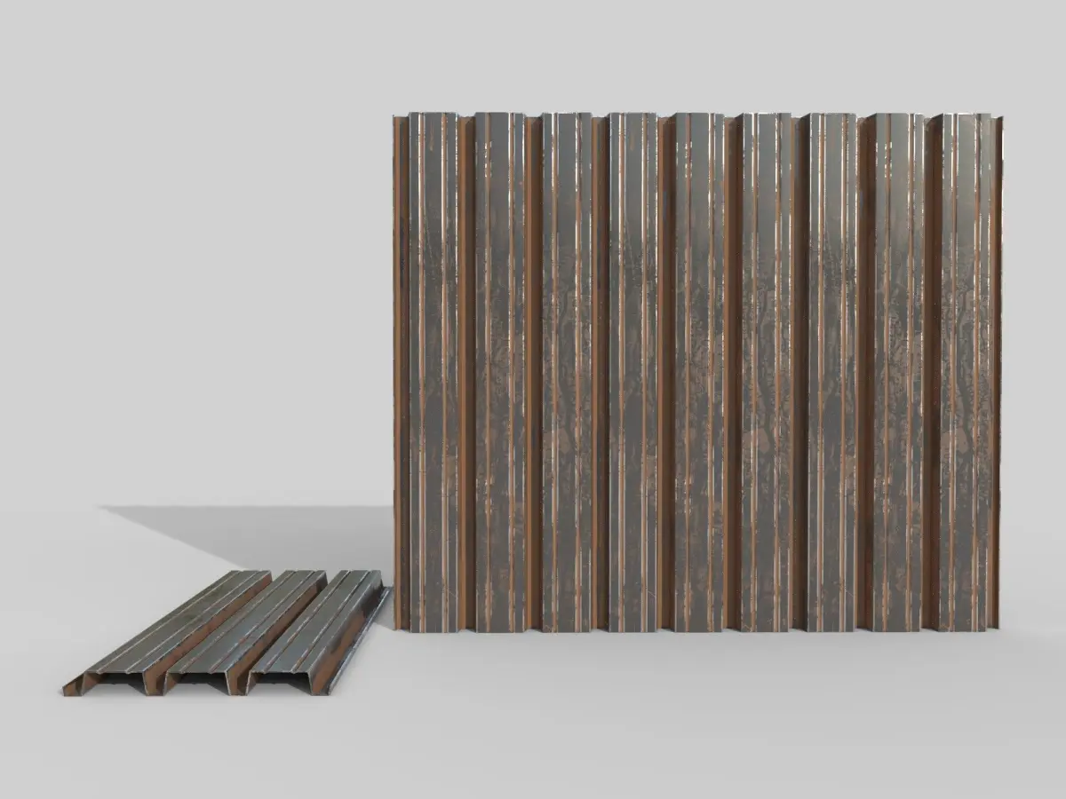 Corrugateed galvanized sheets 5 3D lowpoly model. Multiple import formats