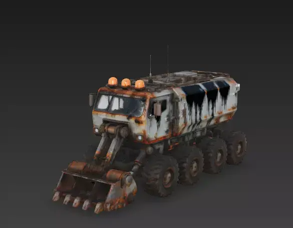The Overall Concept This asset represents heavy-duty utility machinery gone wrong. It is a 6-wheeled excavation or transport rover designed for hostile environments, now repurposed or corrupted by the hazardous materials it carries, fitting perfectly into a sci-fi horror or dystopian mining setting.