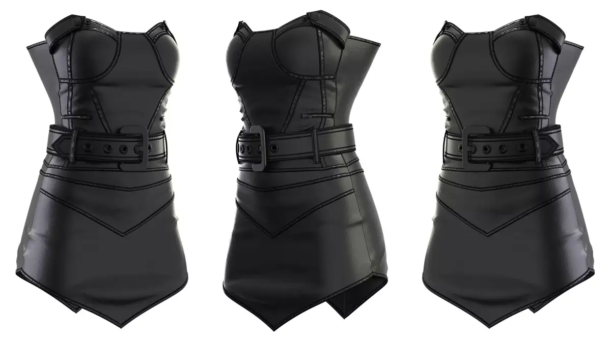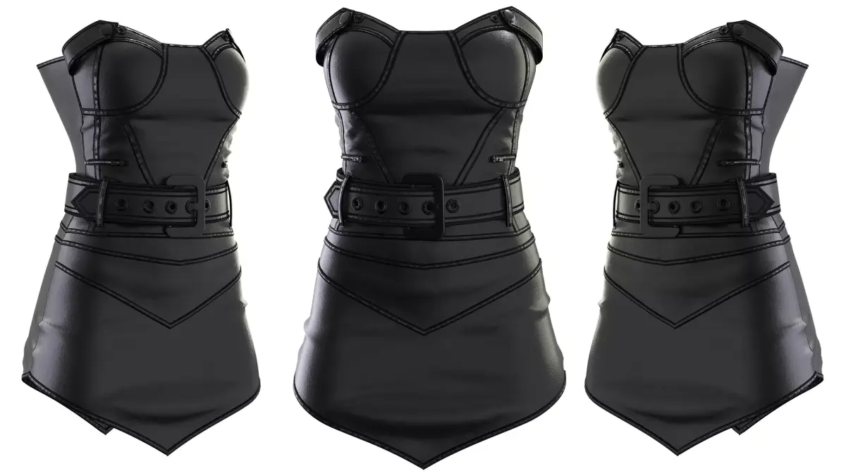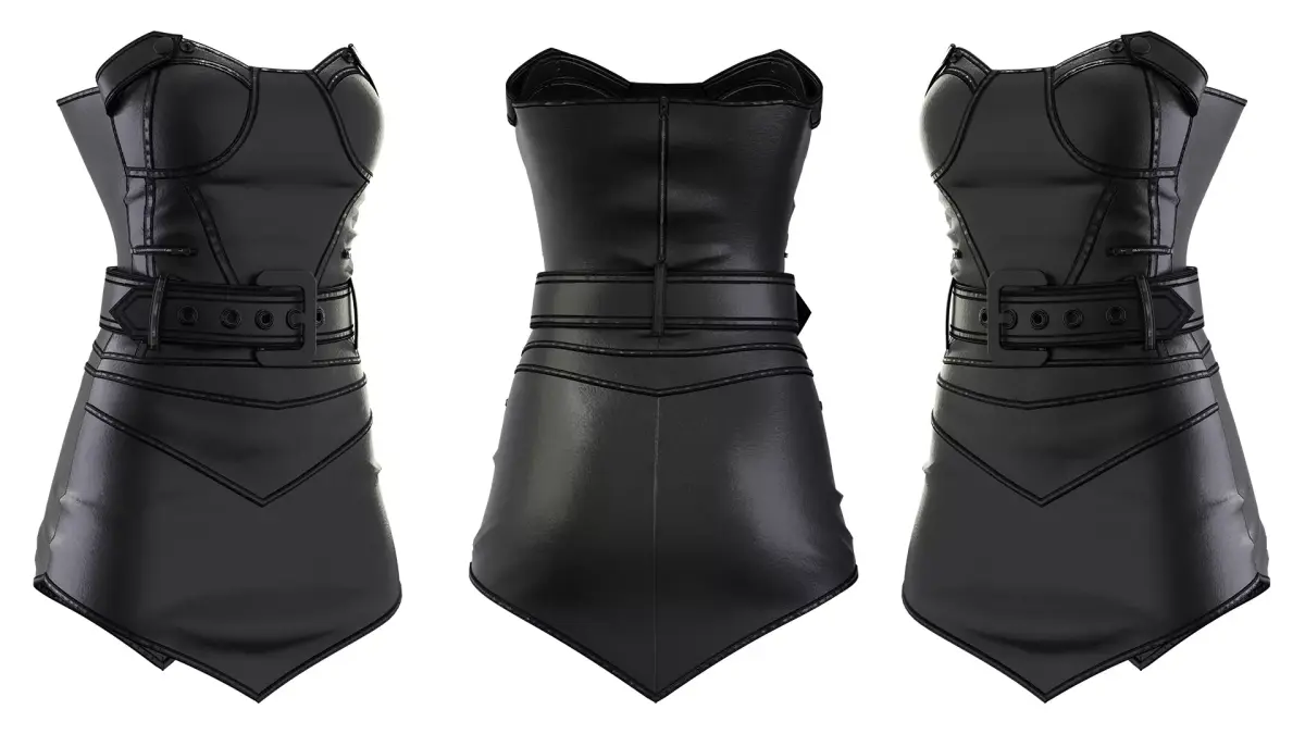 Black Leather Corset Dress – a stylish and detailed 3D model featuring a strapless corset-style top, high-quality leather texture, and decorative stitching. Designed with a fitted silhouette and a matching belt, this dress is perfect for use in fashion visualization, character design, games, and animation projects. The model includes realistic materials and clean topology for seamless integration into your 3D workflow.