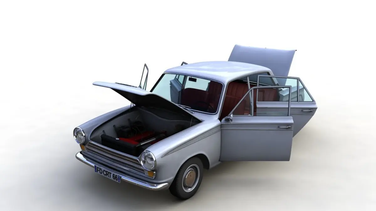 High detailed 3D model Cortina Mk1 4 Doors 1964, from inside and outside.