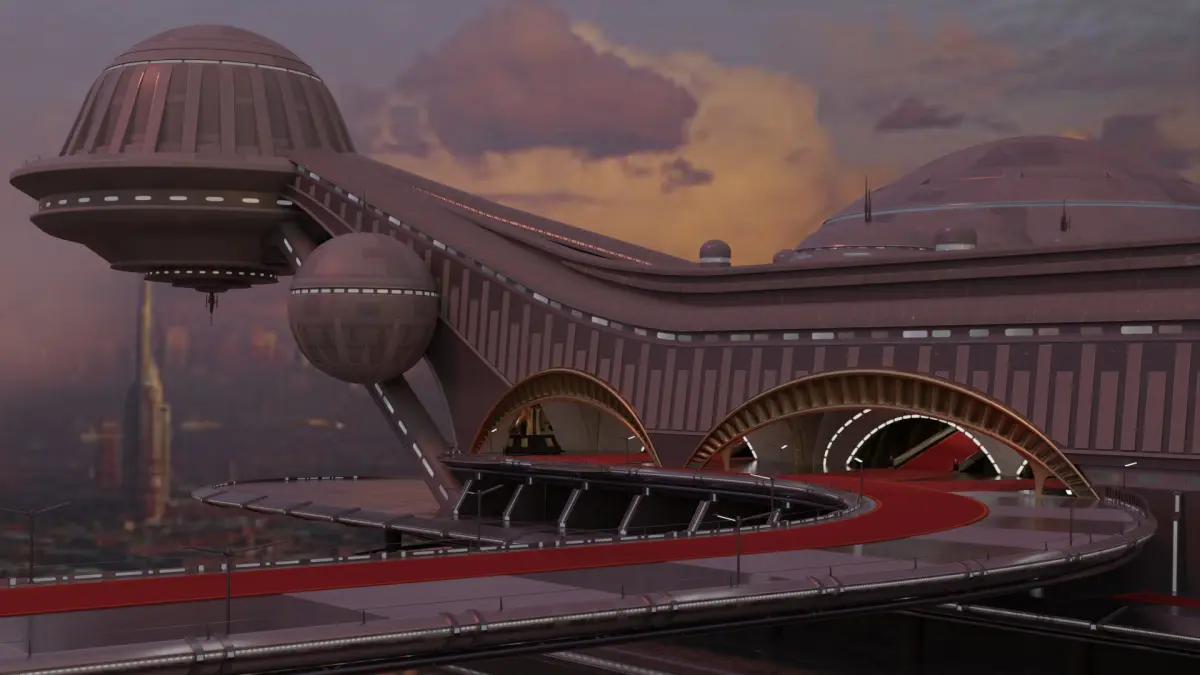 Detailed model of the sci-fi opera house from Star Wars located on Coruscant
