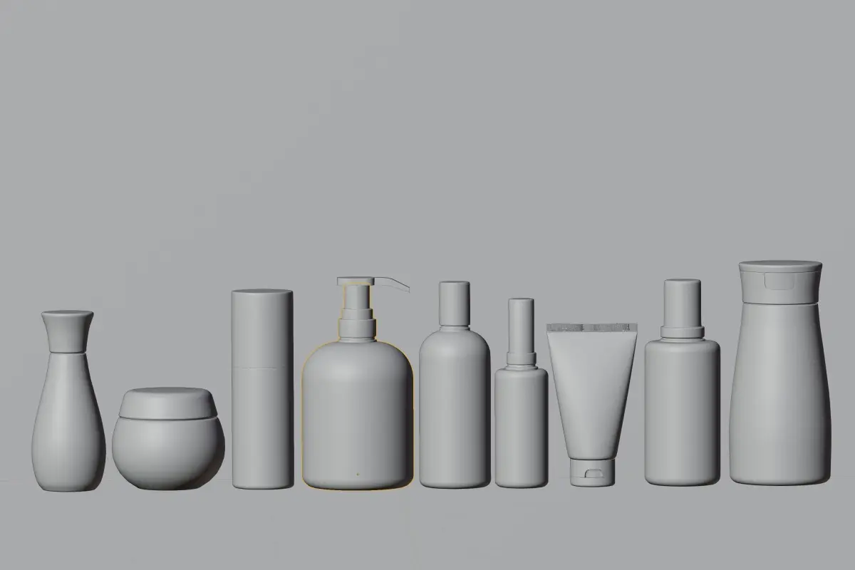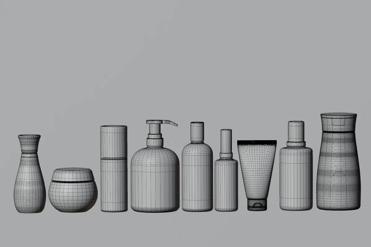 Highly detailed model of a Cosmetic Bottle And Tube Set.