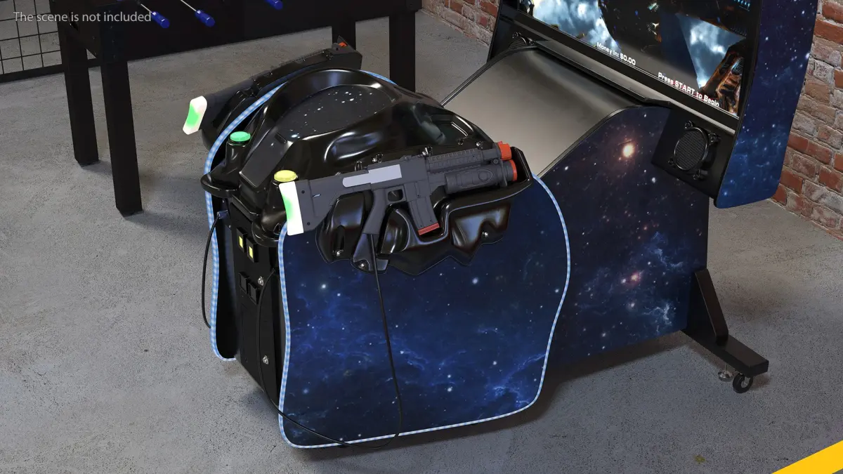Cosmic Arcade Game Machine On State Rigged for Maya is a 3D model of entertainment device or gaming apparatus for science fiction style Arcade shooting game which immerses players in a imaginary (sci-fi or science fiction) style battle against various extraterrestrial invaders.