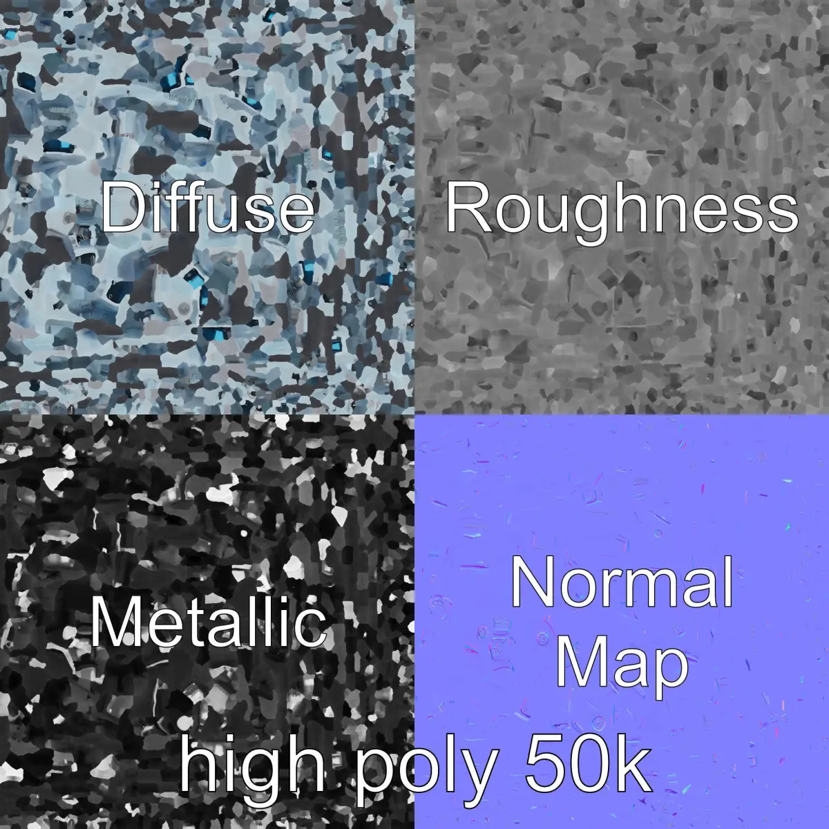 The model's textures are PBR, Diffuse, NormalMap, and reflection/roughness/metallic, which are suitable for any modern rendering engine. All models are accurately unwrapped and have no overlapping UVs. All textures are 4096*4096 in size.
