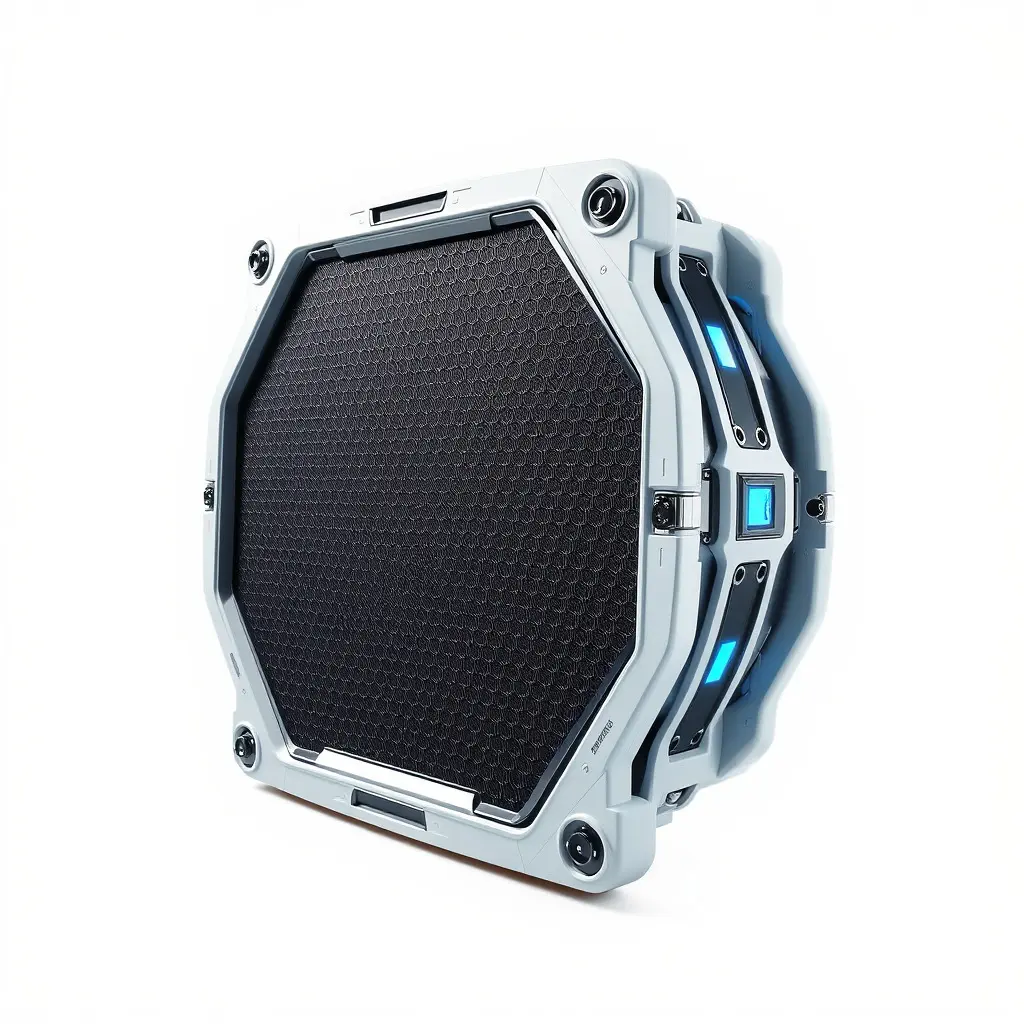 The Cosmic Exploration Walkway Panel is designed for futuristic environments with its reflective surfaces and layered textures for privacy and integration. The honeycomb construction ensures lightweight strength, perfect for rapid replacement engineering needs. Accented with white and royal blue highlights, this model exemplifies futuristic ergonomic alignment.