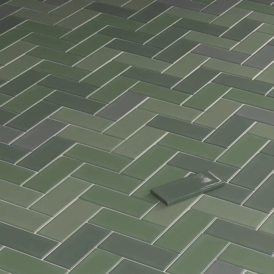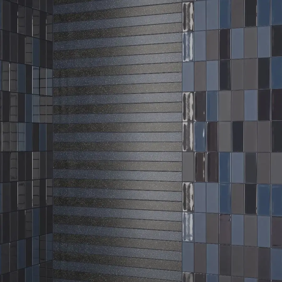 Scene composition:Cosmo tiles: 4 tiles 800x800mm, 4 - 800x200mm, 10 - 800x50mm.Brick: 8 tiles with separate objects and 2 modules 1000x1000 mm (vertical, herringbone).Micro Cosmo: 72 tiles with individual objects and 4 modules.