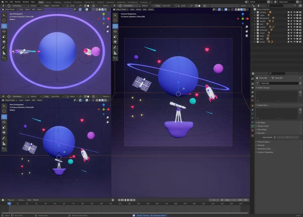 Cosmos3D illustration with an environment of space exploration and the love that some of us have for our universe.