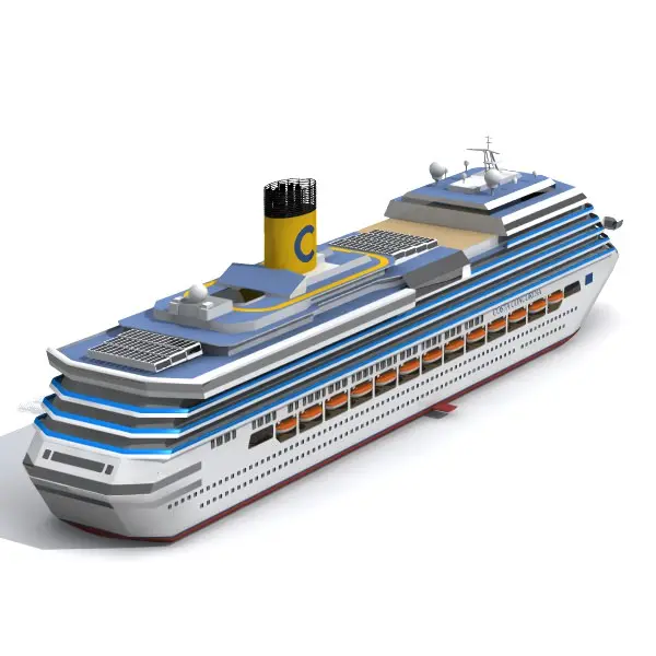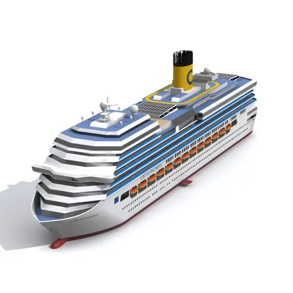 Costa Concordia. Ship's hull and stack are image mapped. Other surfaces are procedural.