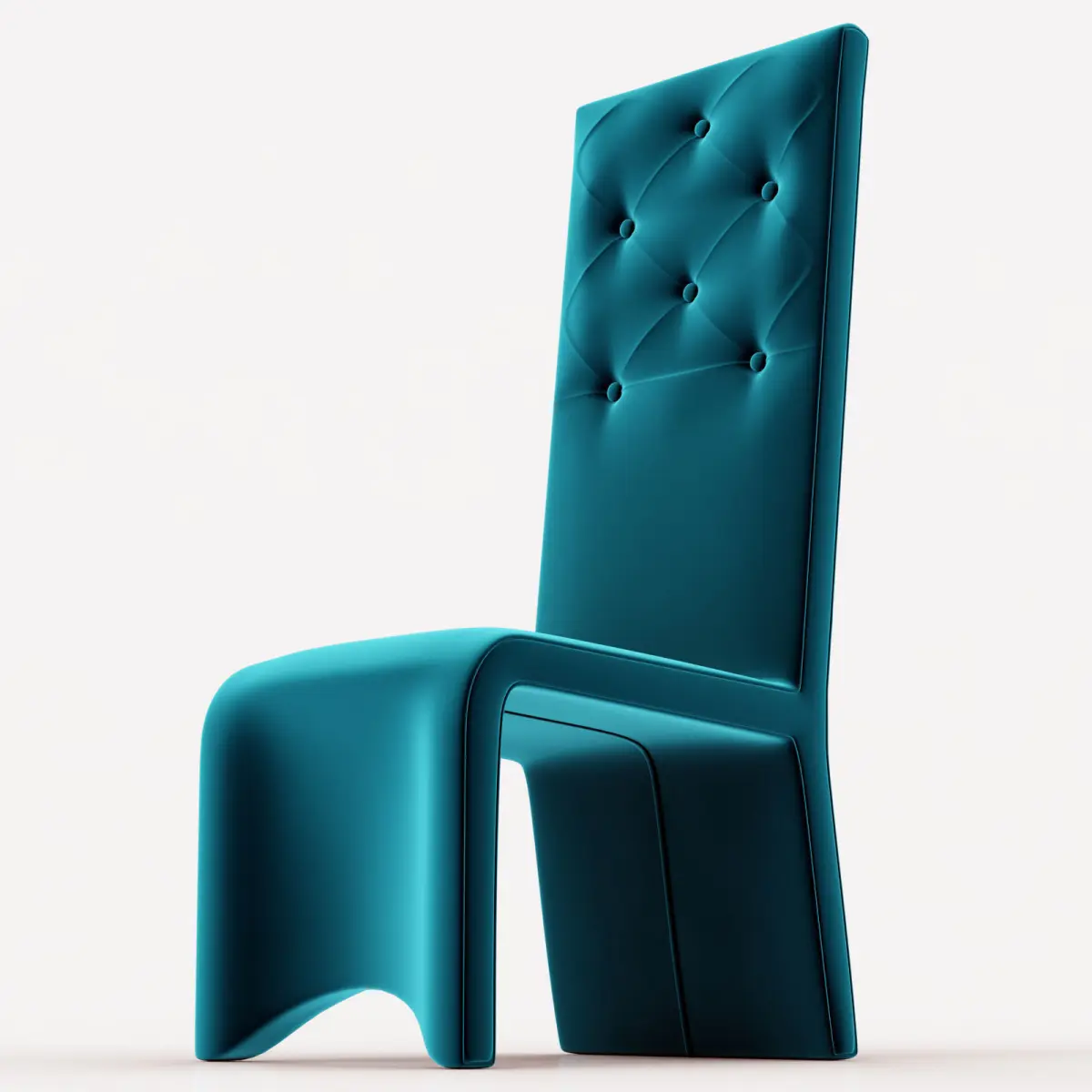 Chandelier Italian desiger side chair handmade and shown in fully upholstered. This luxury Italian furniture collection features a wide selection of finishes including COM/COL and various lacquered colors. Samples available upon request. Made in Italy.