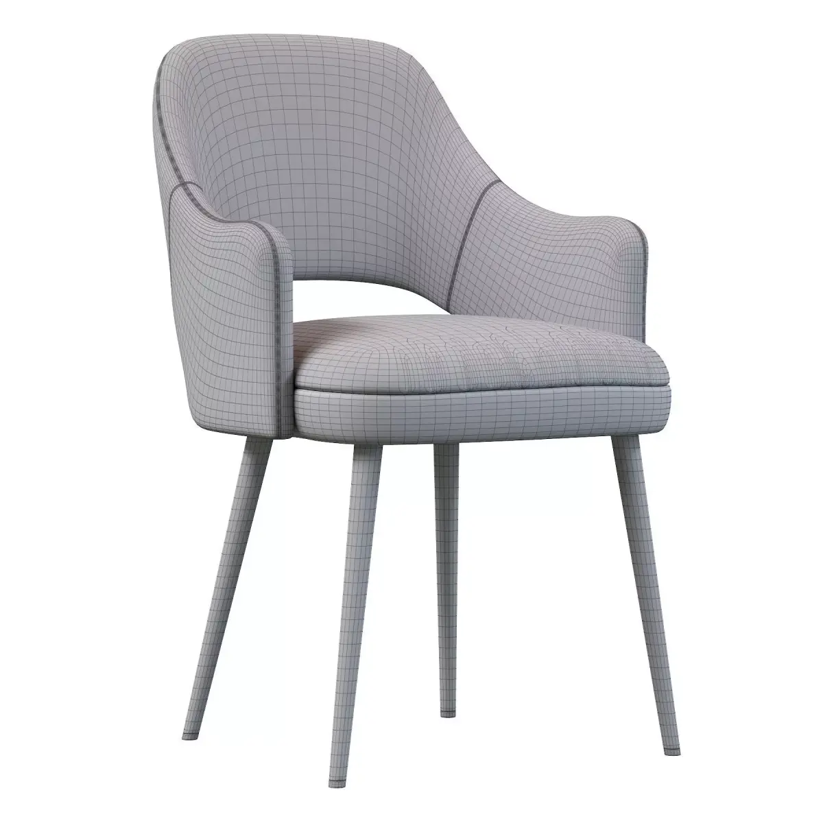 A slightly curved backrest wraps around a seat supported by straight and tapered front legs accompanied by similar sloping back legs.