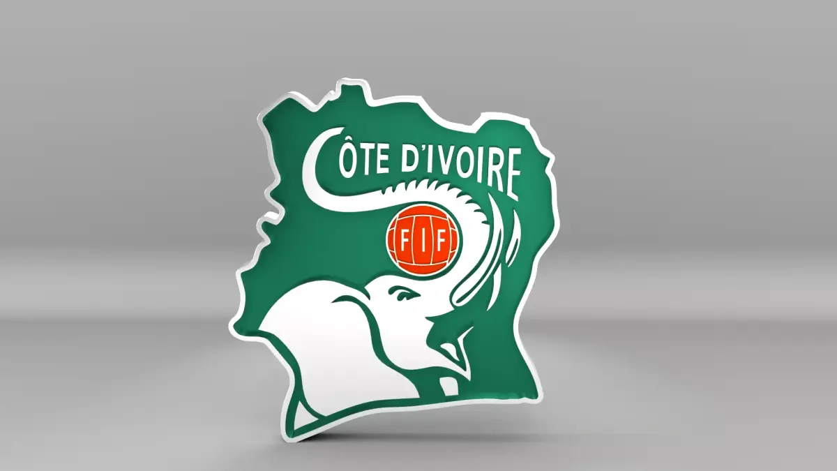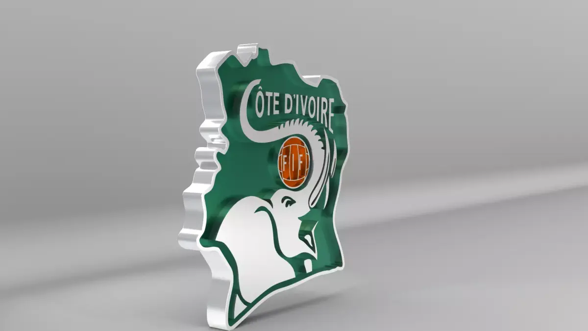Côte d'Ivoire National Soccer Team Logo, modeled and rendered in Maya using Redshift, PBR Textures included (BaseColor, Metallic, Roughness and Normal Maps).