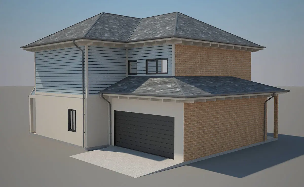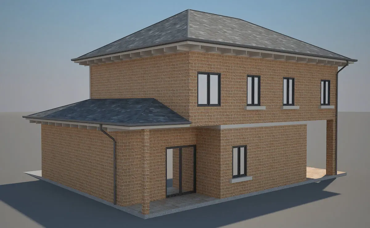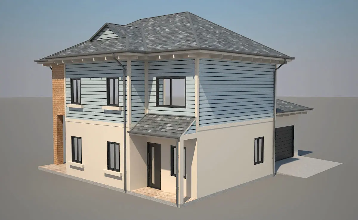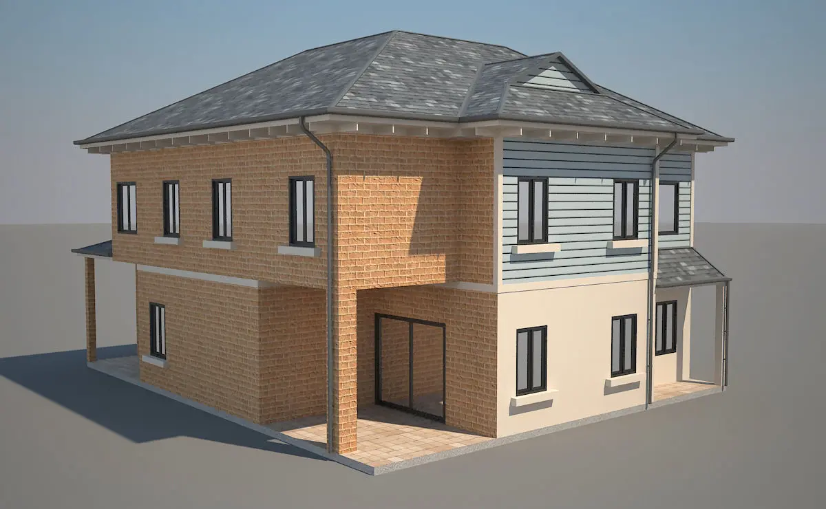 Realistic 3D model of a Cottage House.Real-world scale in feet/inch.