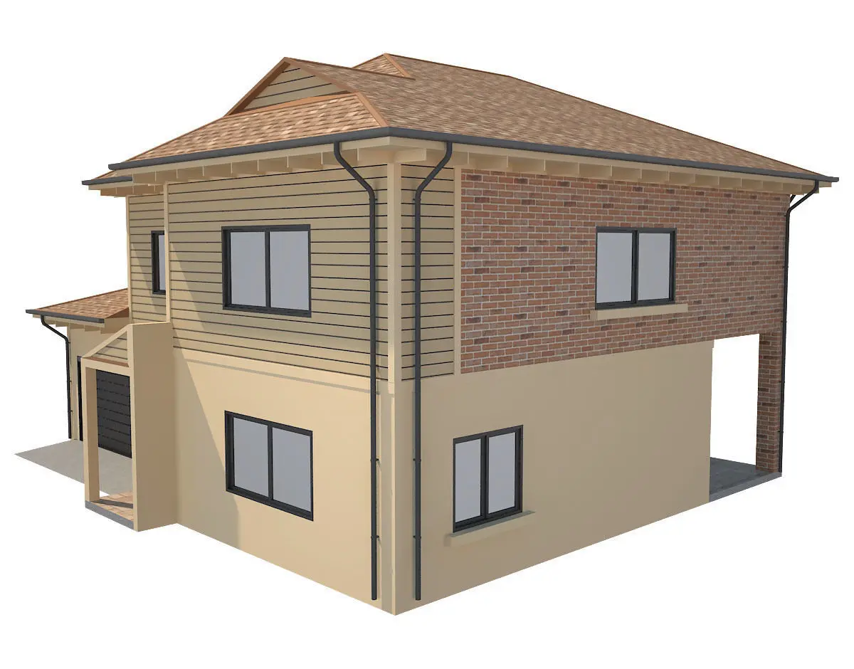 Realistic 3D model of a Cottage House.Real-world scale in feet/inch.