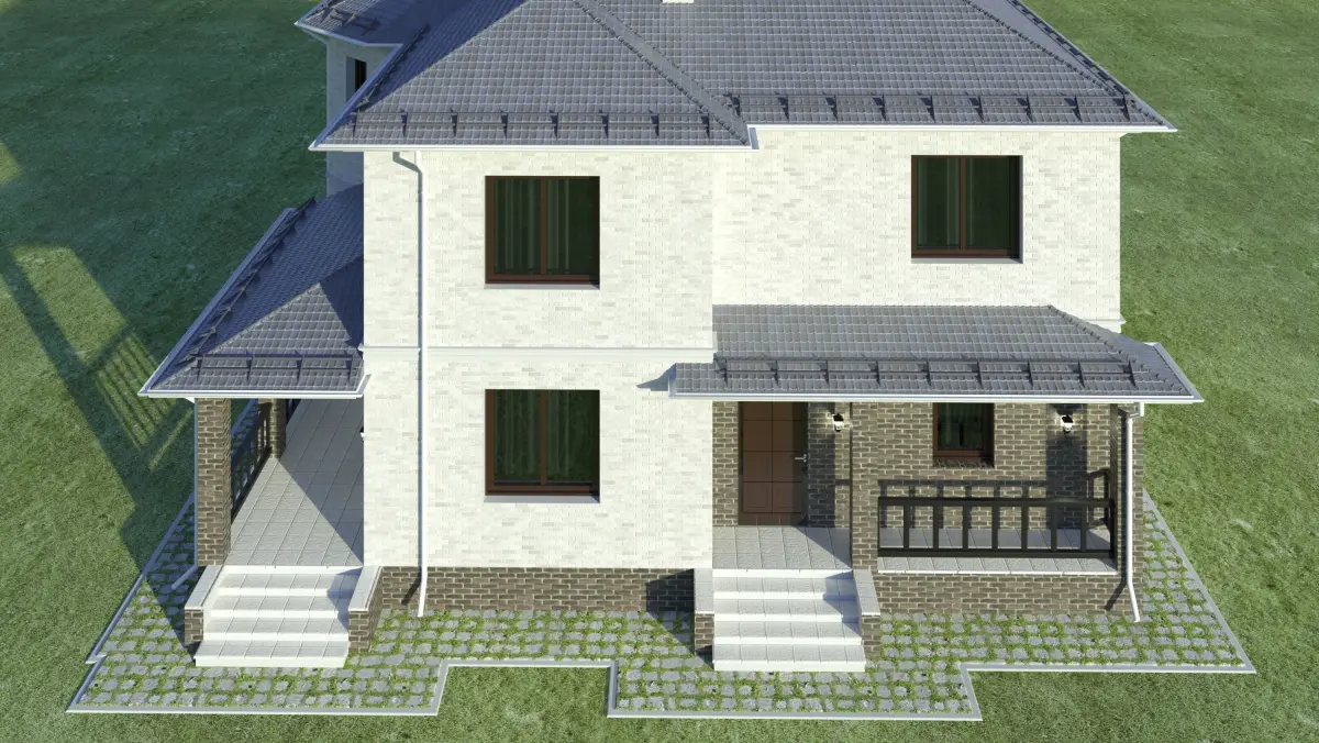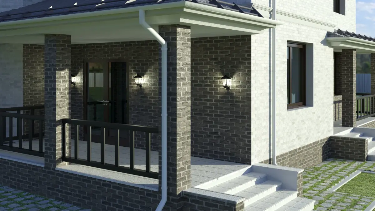 English-style cottage. Light and dark bricks.