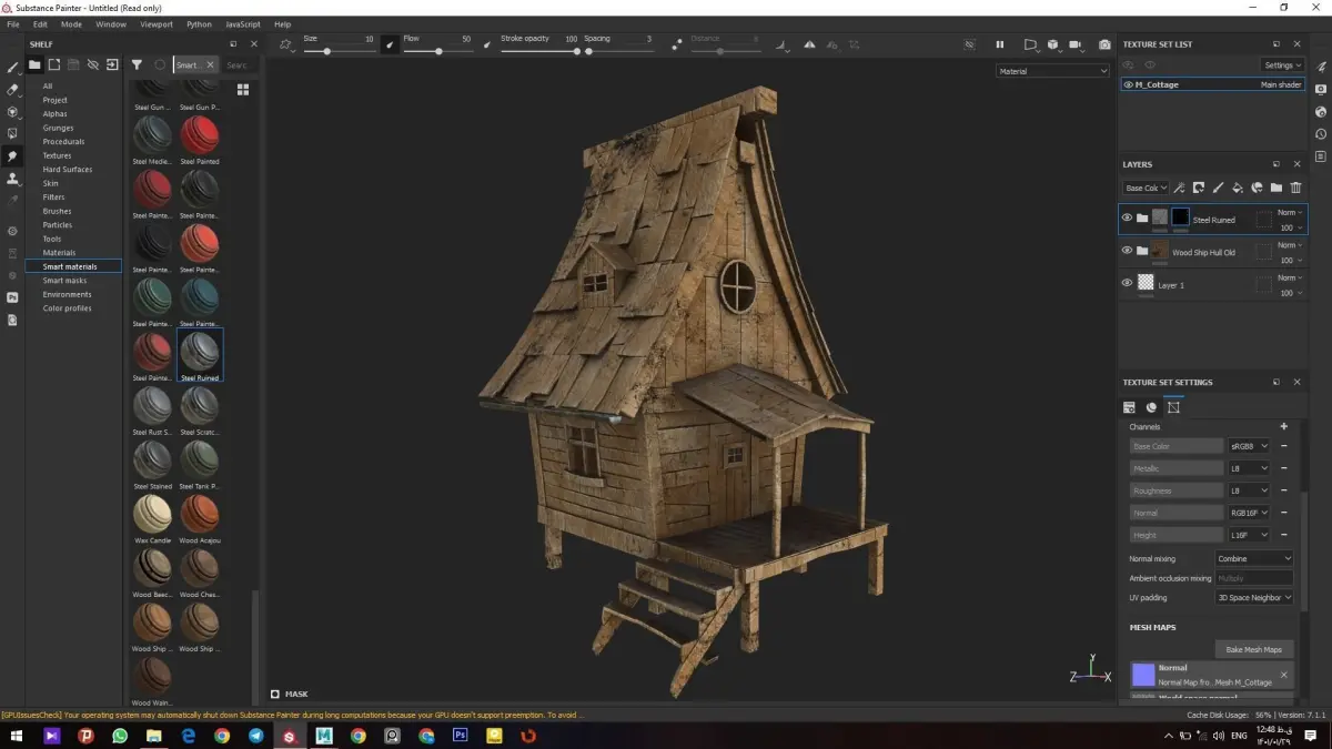 Cottage wooden house Low-poly 3D model