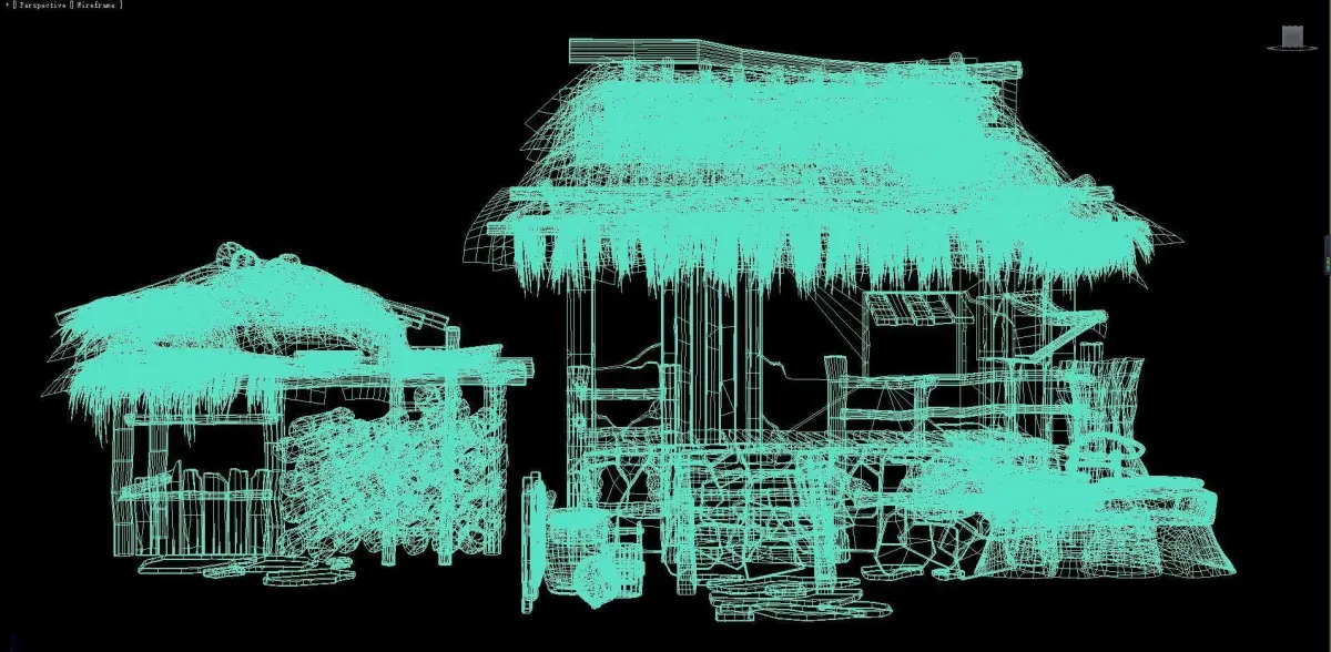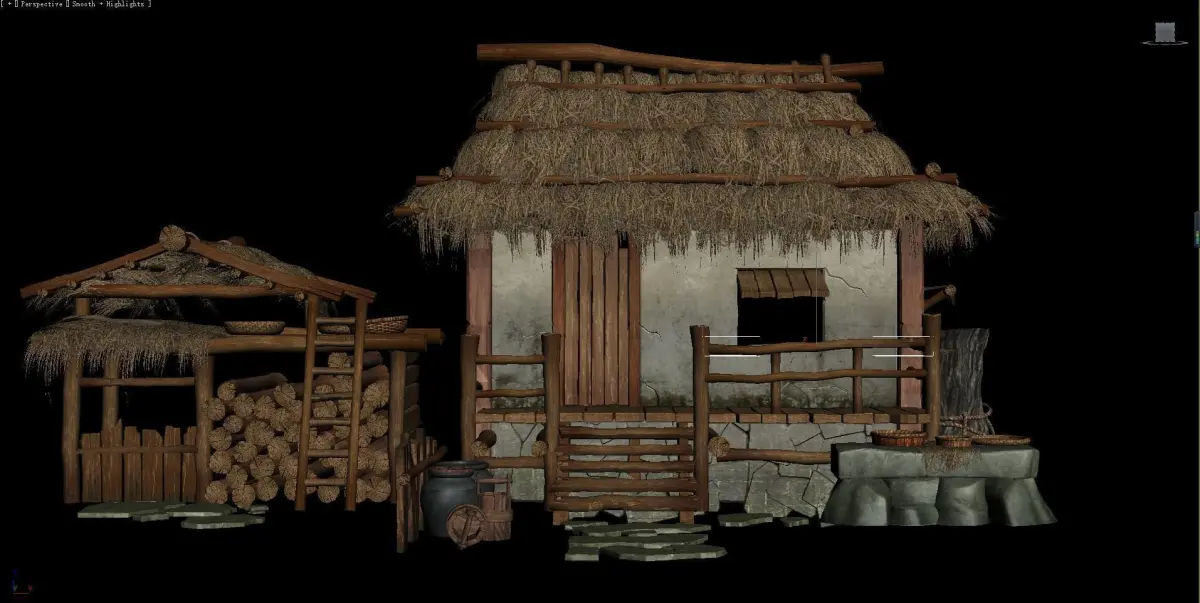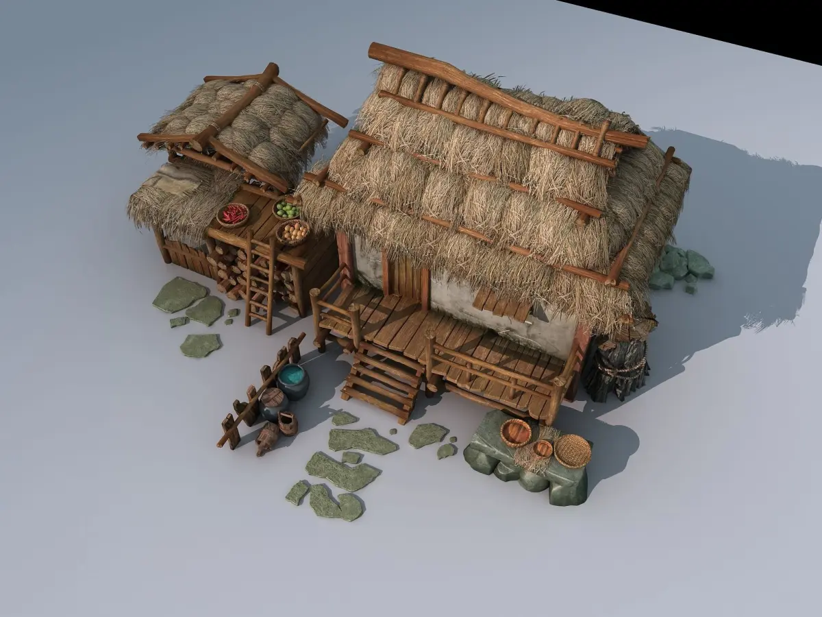 Cottages and thatched huts,Game Scene,Grass-roofed earthen houses