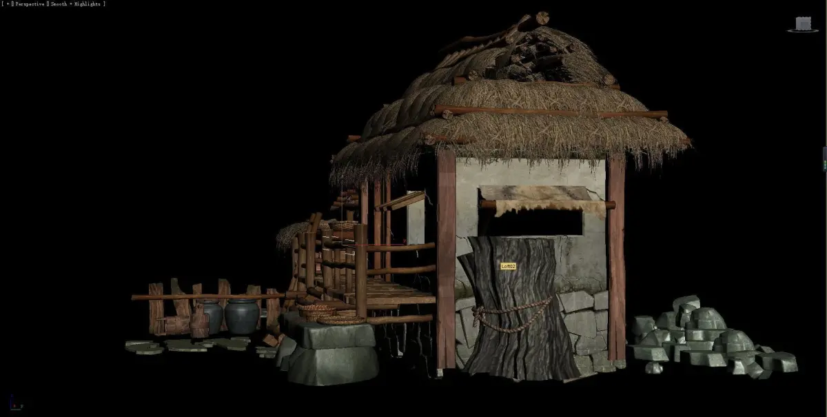 Cottages and thatched huts Grass-roofed earthen houses 3D model