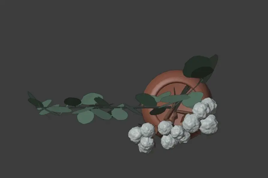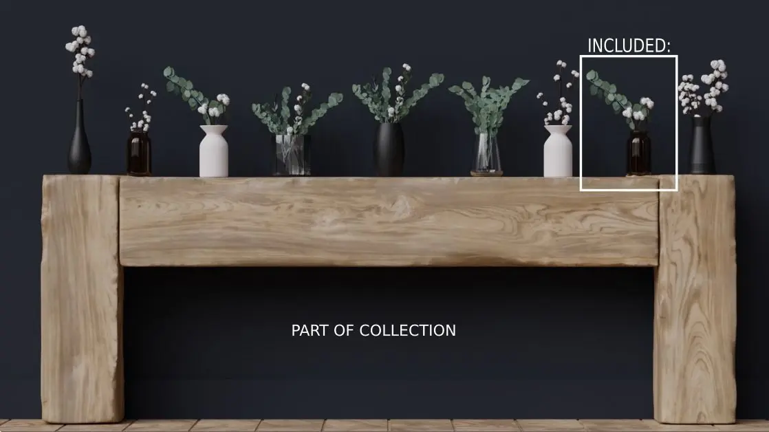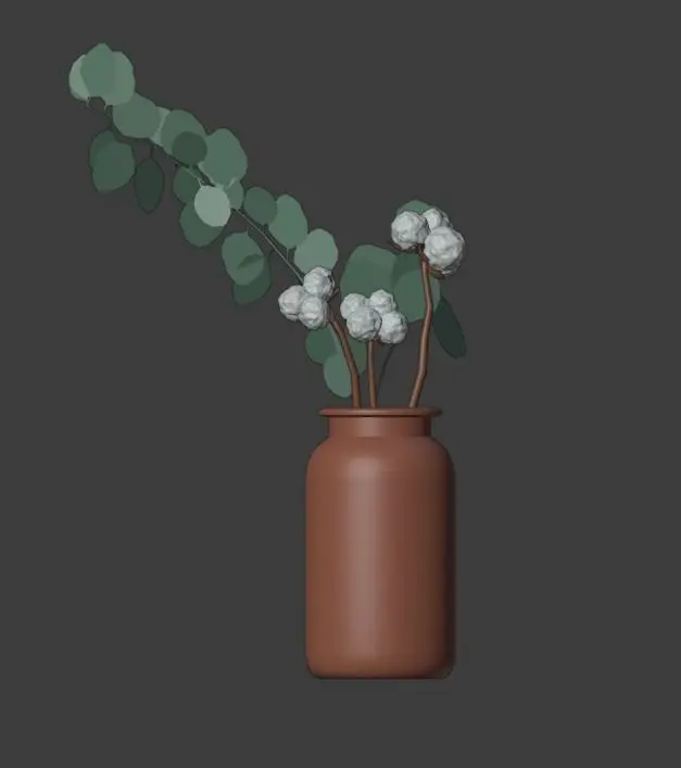 Cotton and Eucalyptus Branches Plant in Amber Glass Jar 3D model