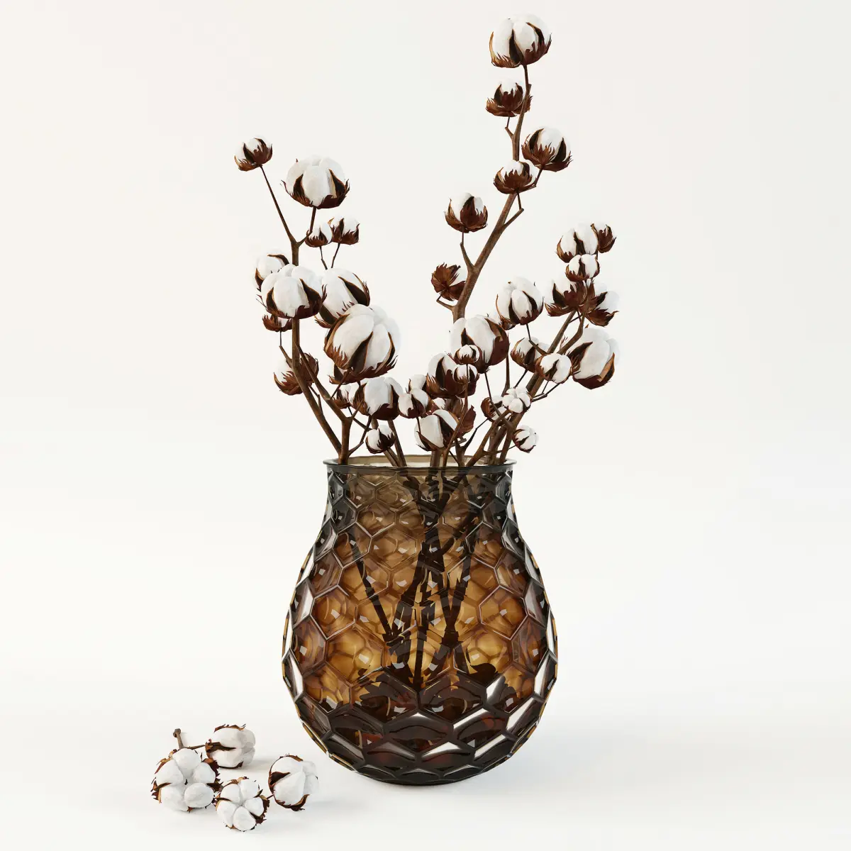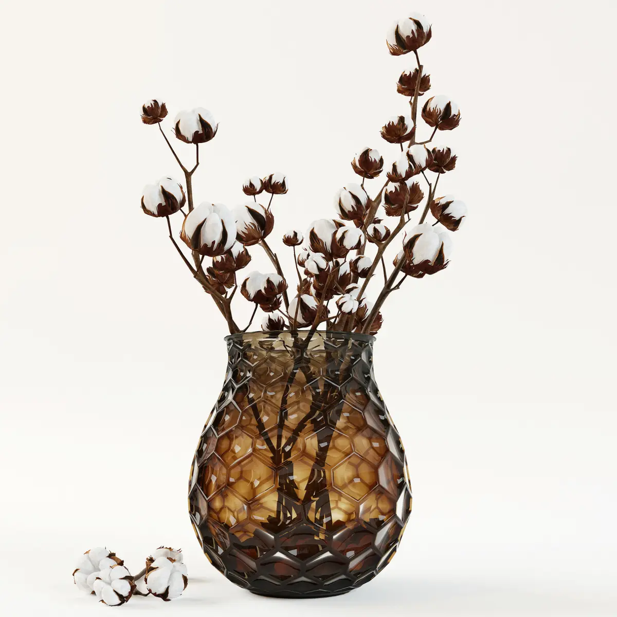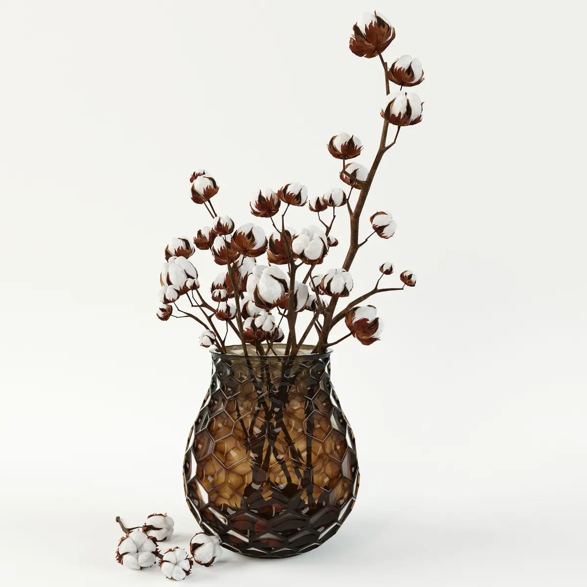 You can see branches of cotton in a glass vase in the archive file.Size: