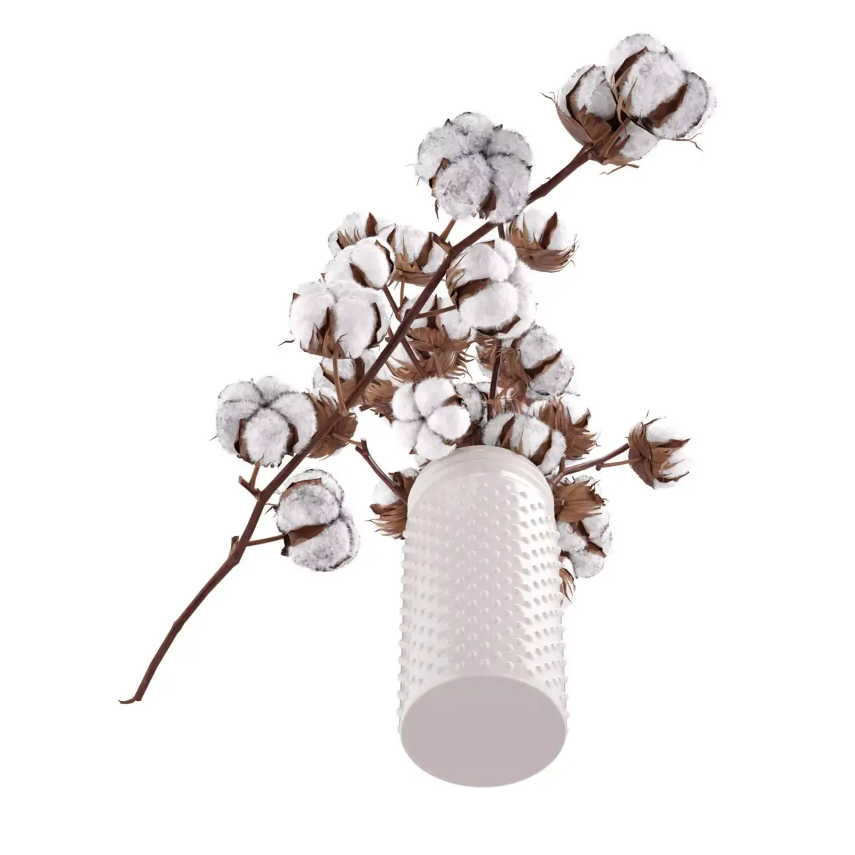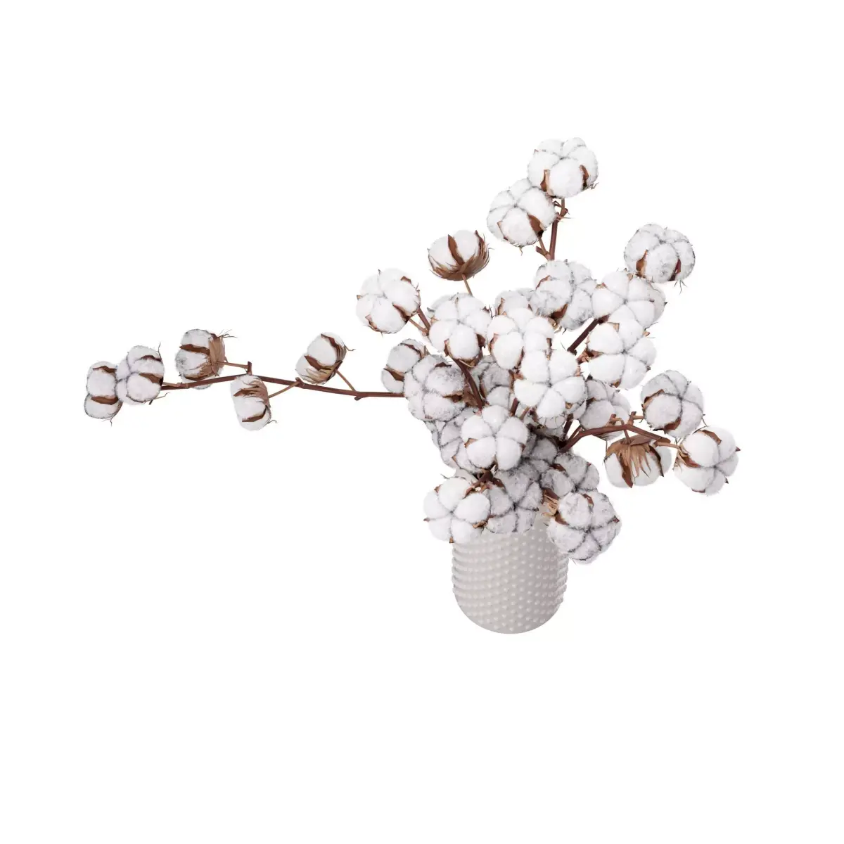 A detail flower pot with cotton flower. Its a photorealistic 3d model made in blender, than use as any acctractive decor item for product visualization.