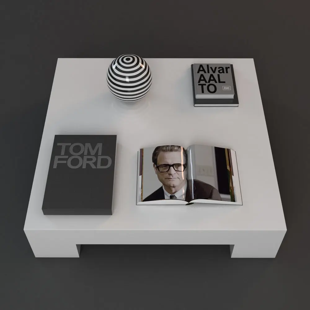 A DETAILED 3D MODEL OF A COUCH TABLE WITH DECORATIONS;