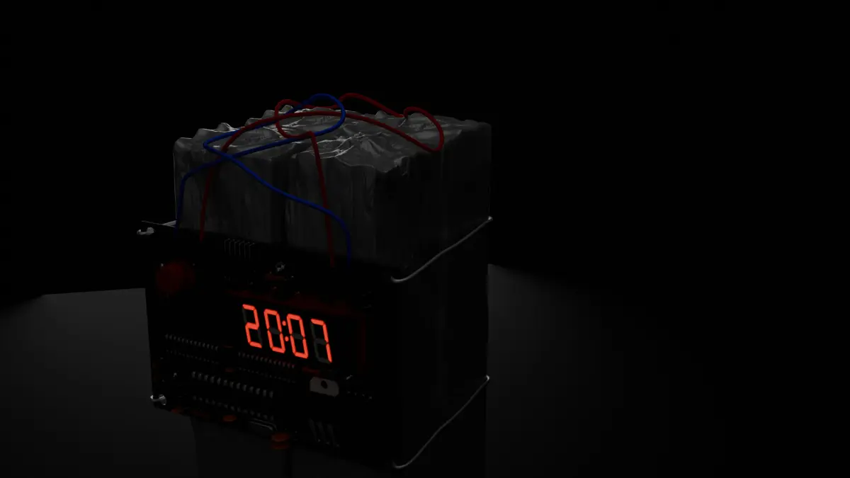 This is a high-quality 3D model of a digital countdown timer circuit, created in Blender and exported in multiple formats (FBX, GLB, MTL, OBJ, PLY, STL). The model features a detailed circuit board with a 7-segment LED display showing 88:88, resistors, capacitors, microchips, and realistic wiring. The model is designed to resemble a functional electronic timer used in educational or electronics visualization projects. All elements are neatly modeled with optimized topology and clean UVs, making it suitable for games, animations, AR/VR, and product visualization.