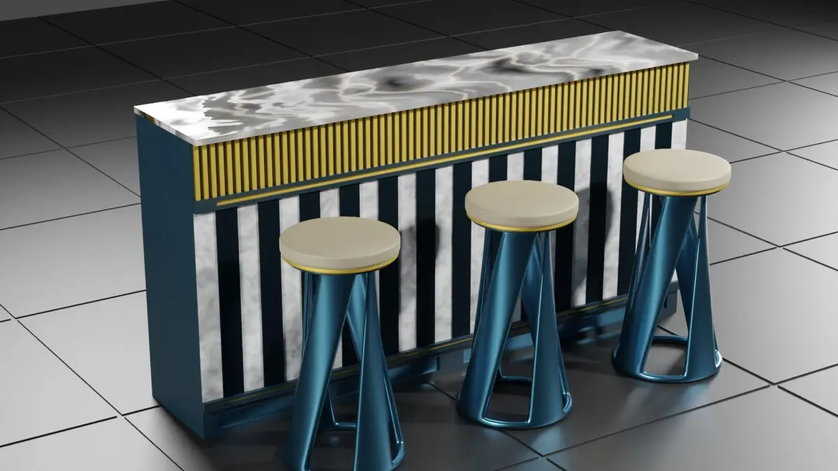 Counter Bar Luxury Style's is the first design of the interior bar. Color and material are the main focus of this Set Counter Bar. Nevertheless, this model consists of three parts: a counter bar, a chair, and a set counter bar (counter bar with chairs). Coming soon, you can see the full interior of this idea.