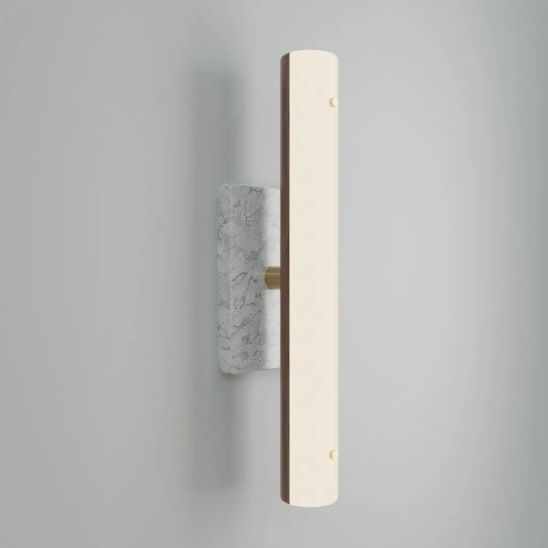 Counterweight is a series of LED fixtures made of gently arching, steam-bent wood that uses marble and brass as ballasts. Whether acting to cantilever the arms of the mobile light, or fixed as the base of the floor lamp, the mass of the stone and metal acts as a foil to the otherwise lightweight frames.