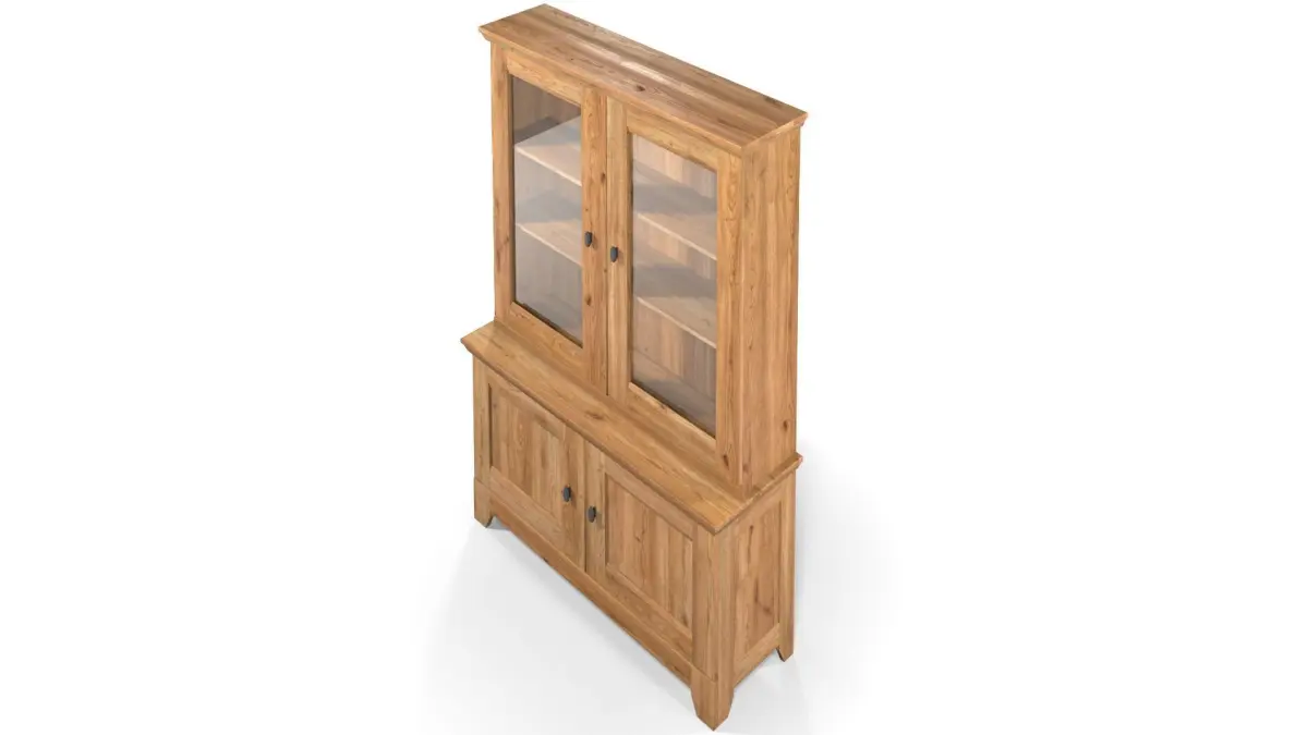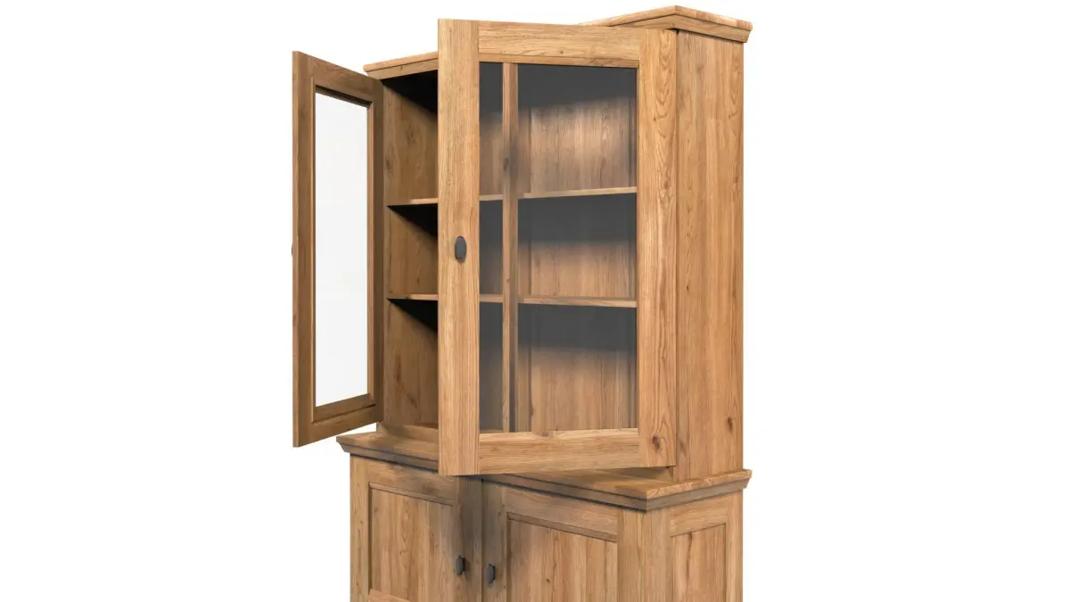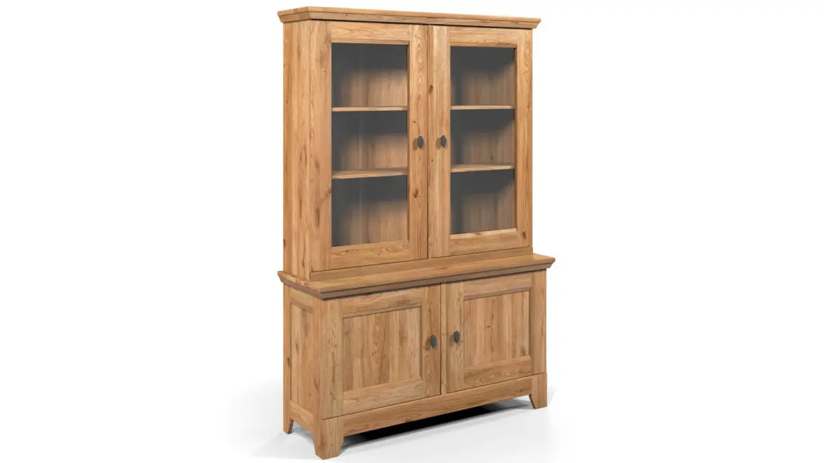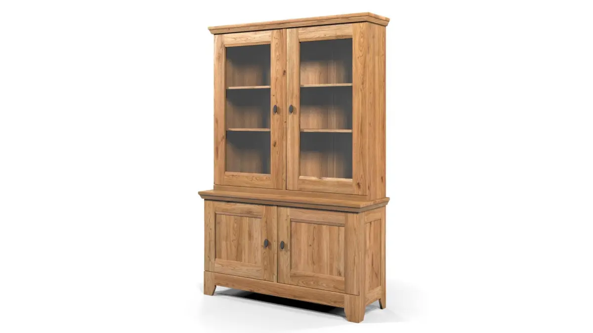 Country Display Cabinet with two glass doors and other two doors, full solid Oak, rustic wood furniture