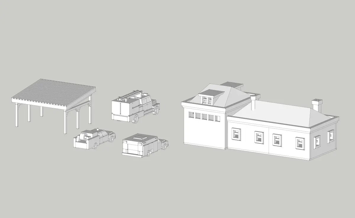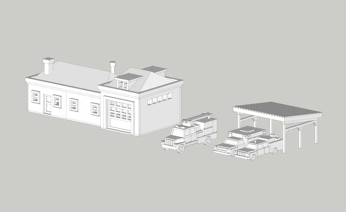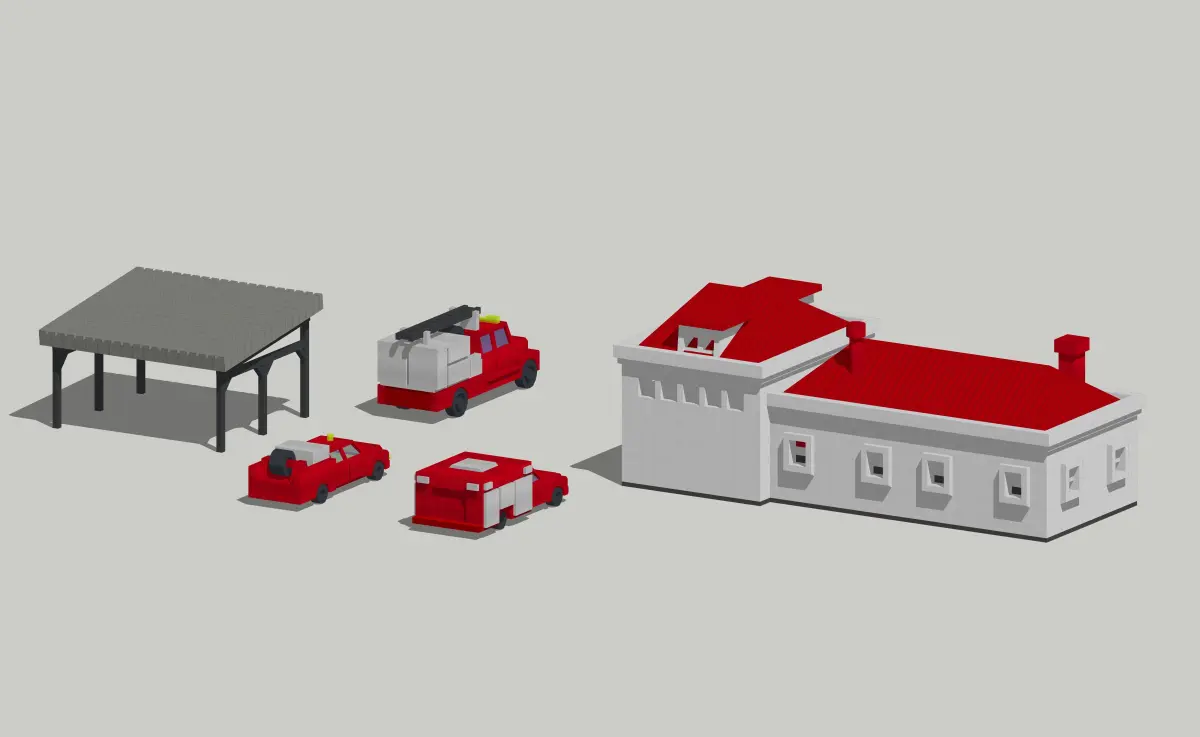Country Fire Station with Fire Trucks by Outland Models Low-poly 3D model