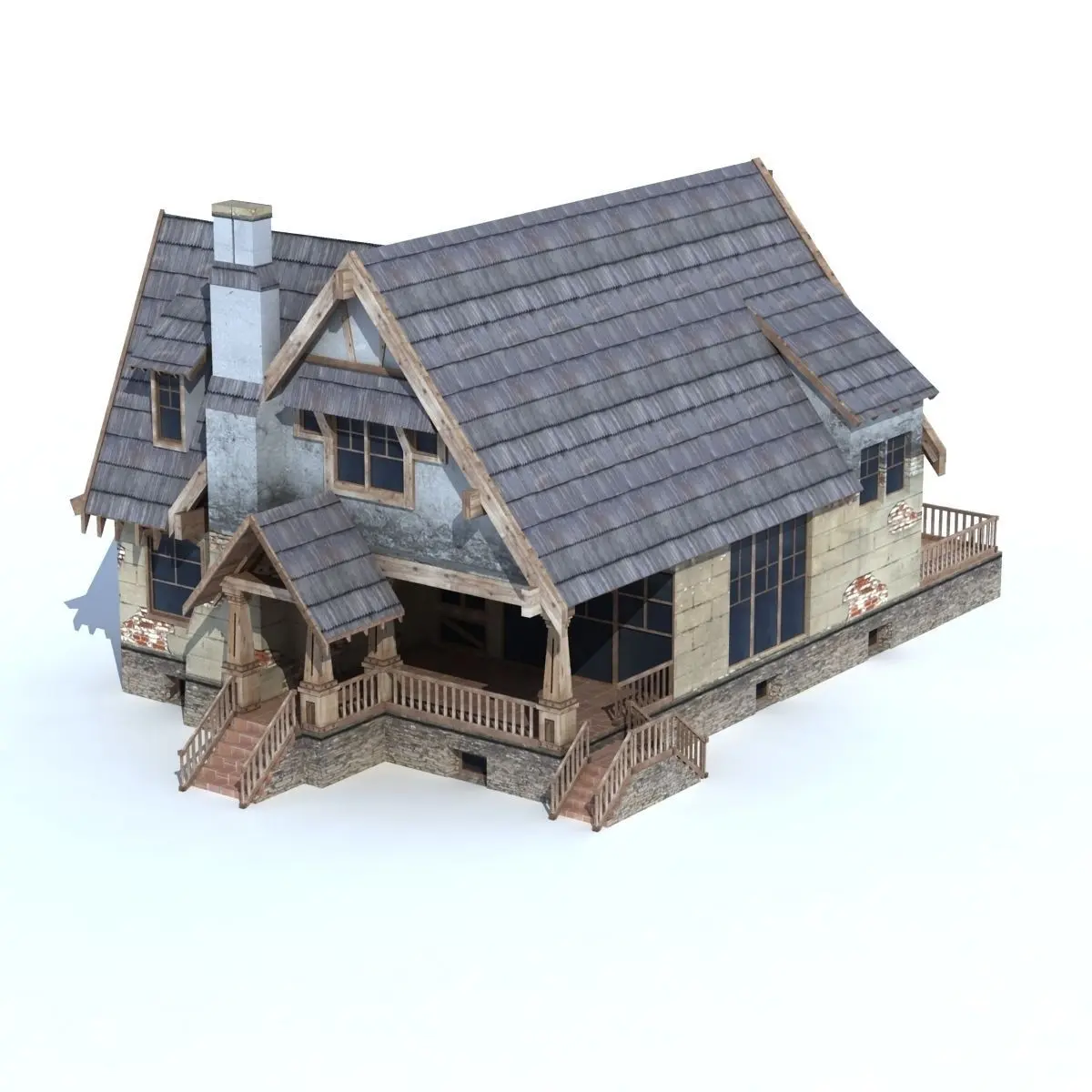 - Originally created with 3ds Max 2012-Max file with Standard materials - Unit system is set to centimeters. Model is built to real-world scale-Materials are intelligently named and grouped. All used materials are in Material Editor.- Previews rendered in 3ds Max 2012 using Mental Ray-Texture sizes: wood: 700x700 walls: 2048x2048 roof 640x640