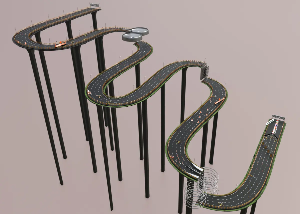 3D Model of a country marble racing track. This model is suitable for Blender only. The rigid body physics, camera animation, objects animation, lighting and camera has already been setup. The sample race was rendered with Eevee. Suitable for fun games with family or rendering to share to your youtube channel. If you need after-sales assistance, just text me and I'll respond as quickly as possible.