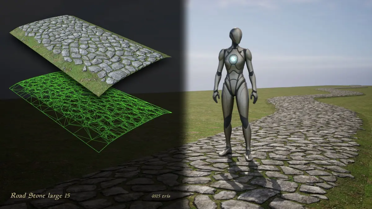 Low poly game-ready set of 9 different types of roads - 5 types of smaller cobblestone, 2 large stone variants and 2 types of dirt path.Tileable and spline-deformable.Textures are PNG format, half 4k, including: Color/Albedo maps, Normal maps and RSM (roughness,specular,Metallic) maps