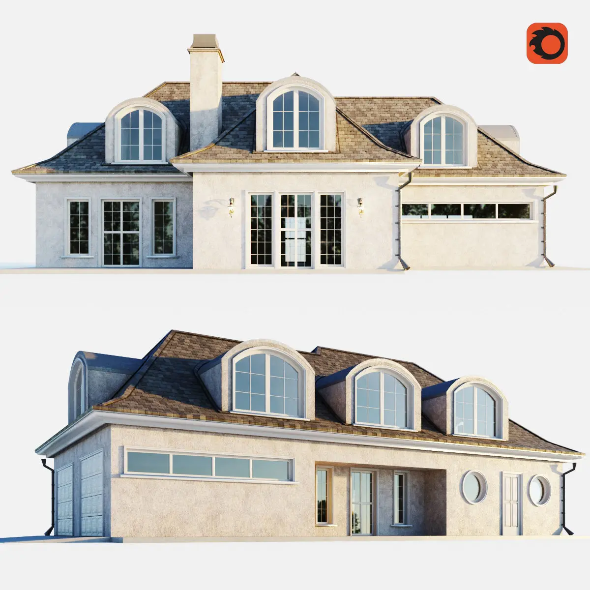 The archive contains floor plansOn the ground floor there is an entrance hall, a living room, a kitchen-dining room with a pantry, a garage, a boiler room, a bathroom.Upstairs hall, home office, two bedrooms. Each bedroom has a bathroom and dressing room.