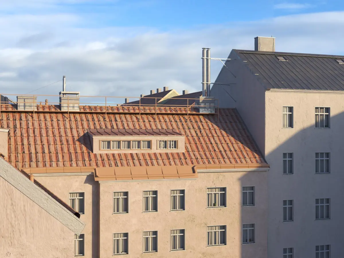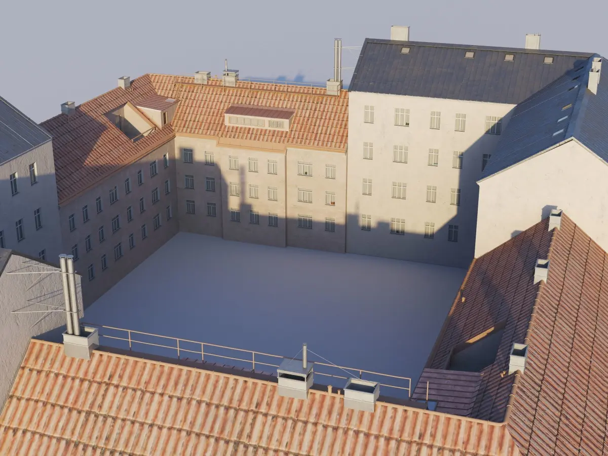 This is a realistic looking 3d model of an european residential building countyard facade, which you can find in vienna austria.