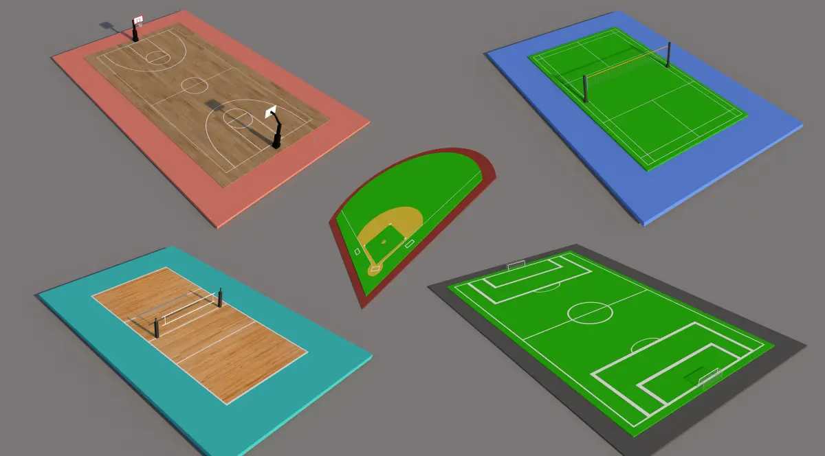 Poly and Vertices:Basketball- P- 4,494 V- 6,389Volleyball- P 4,901 V- 7,809Badminton- P-2,001 V- 3,571Soccer - P- 10,778 V- 31,213Baseball- P 509 V- 590