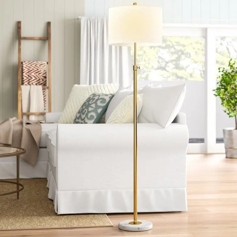 - Cast a precise glow with this Courtland Adjustable 65Floor Lamp, which can move up and down 8 to align with the perfect height. The marble base provides a sturdy foundation to prevent tipping and a fun dose of style. Finished with a silk-wrapped cord, the details exhibit the luxury craftsmanship inherent in this design.