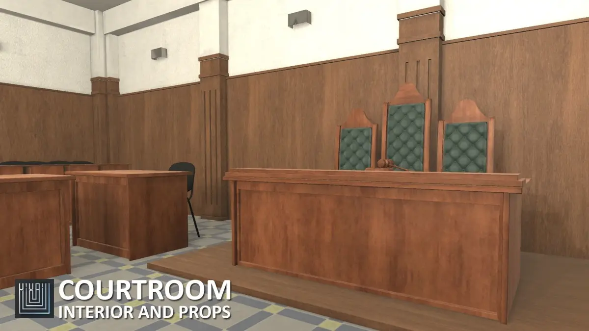 Mixaill studio presents a good solution for your games, VR projects and simulators.Courtroom - interior and props is a hall with furniture and interior items that will help you save time on implementing your ideas.There is a ready-made scene for the Unity and Unreal enginesPack includes a large set of necessary models:roomdoorjudge's chairjudge's tableadvocate's desktribunewooden fenceoffice chairlampindoor flowergavel