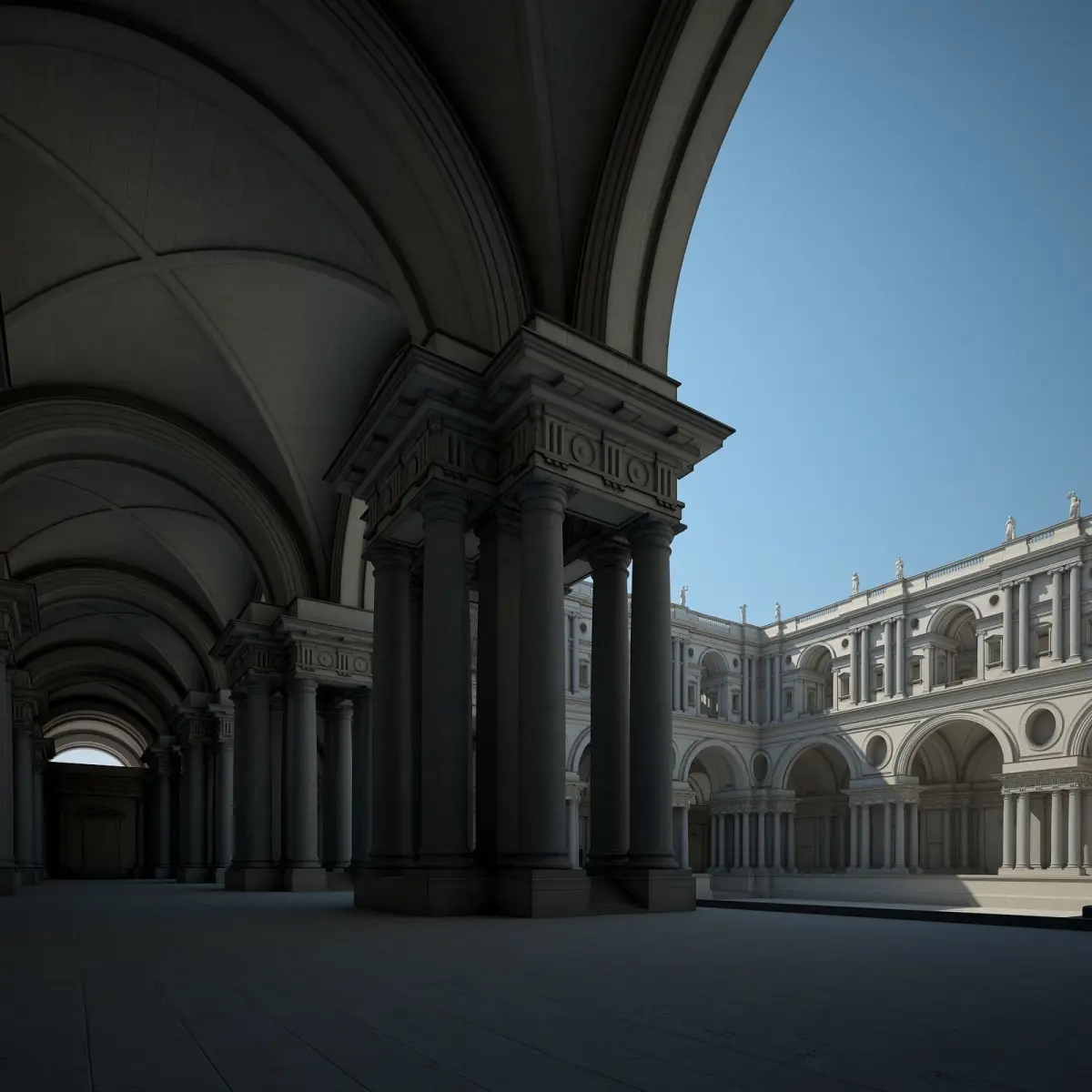 Highly detailed 3D model of a classical style courtyard / cloister.