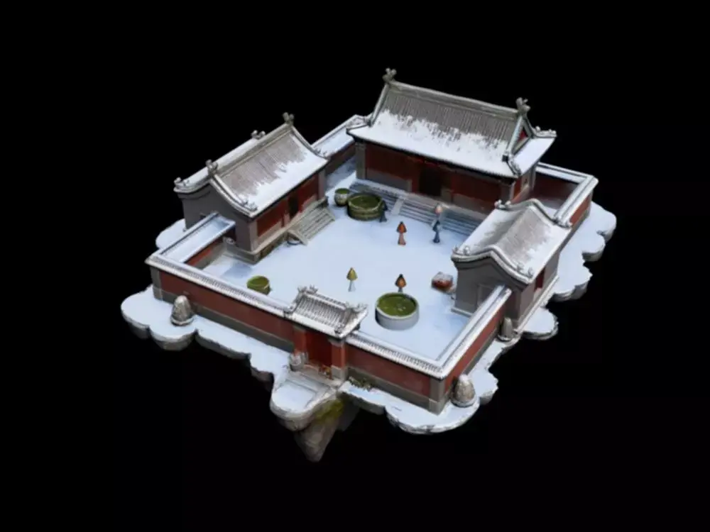 China ancient style ancient architecture courtyard pavilion quadrangle courtyard snow scenery